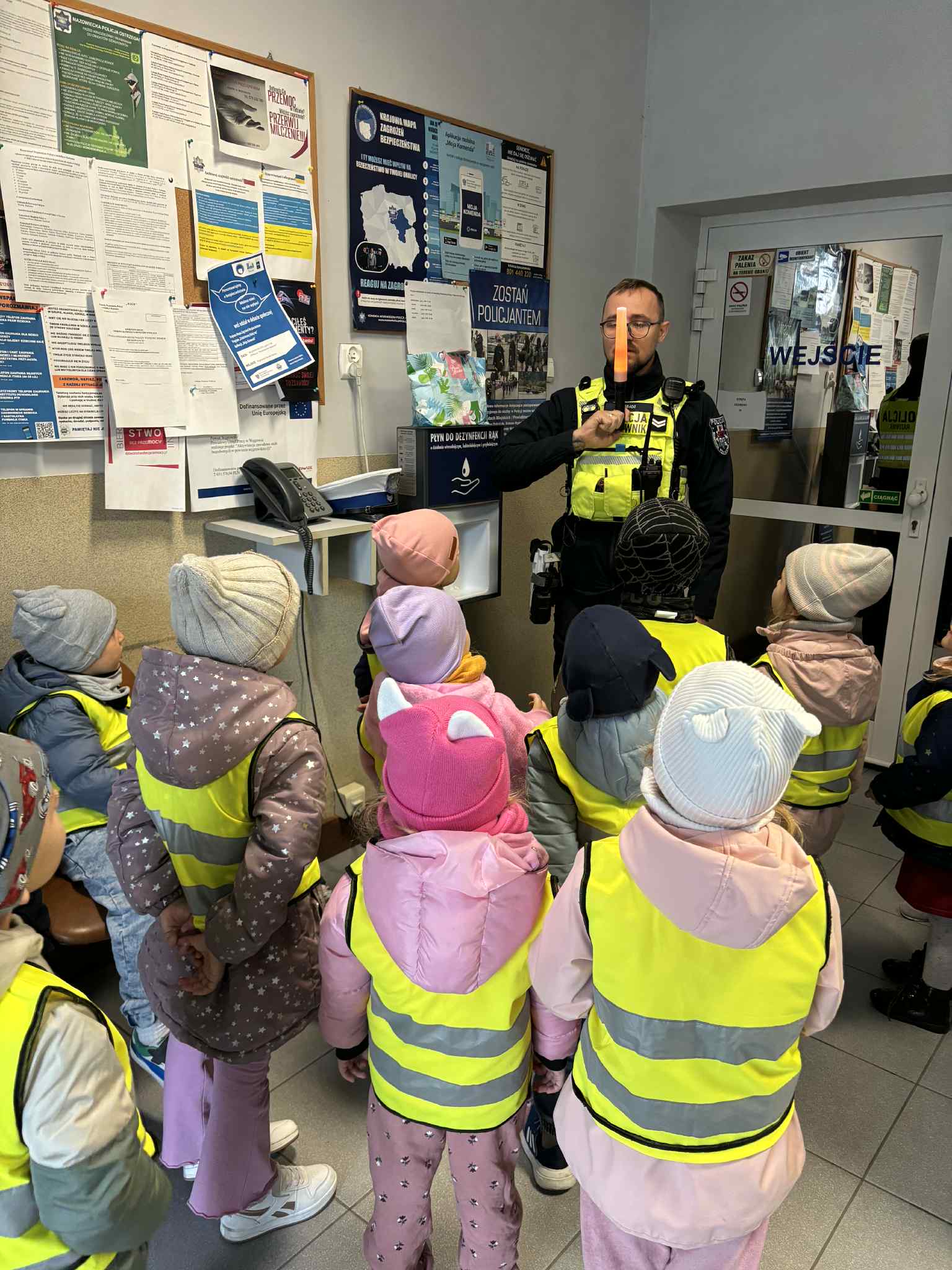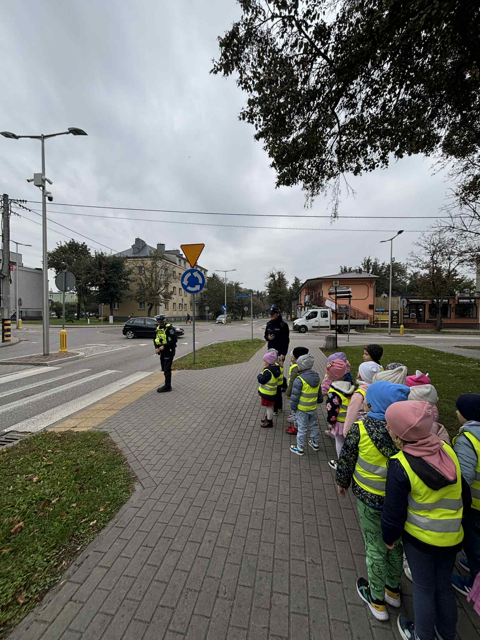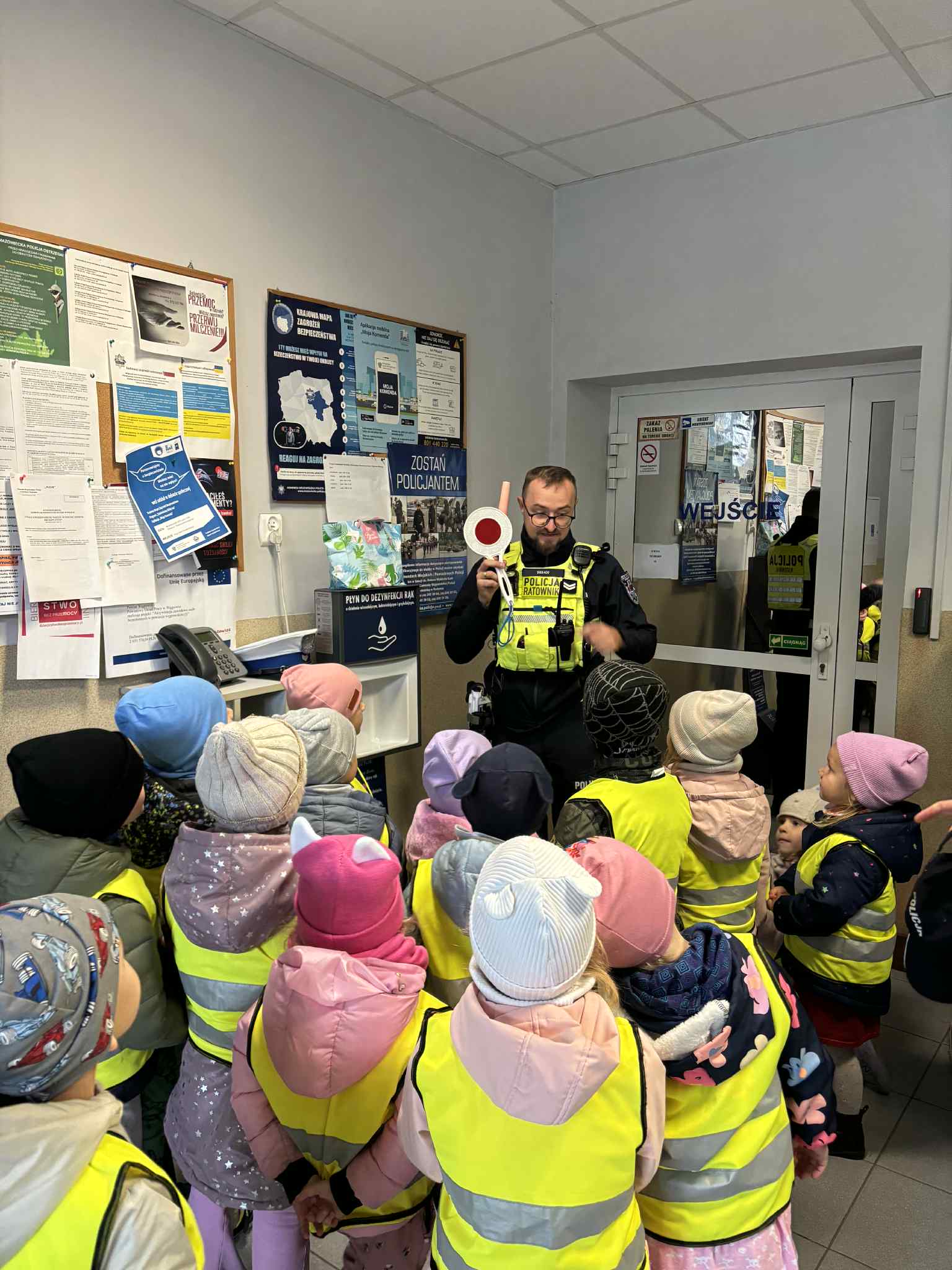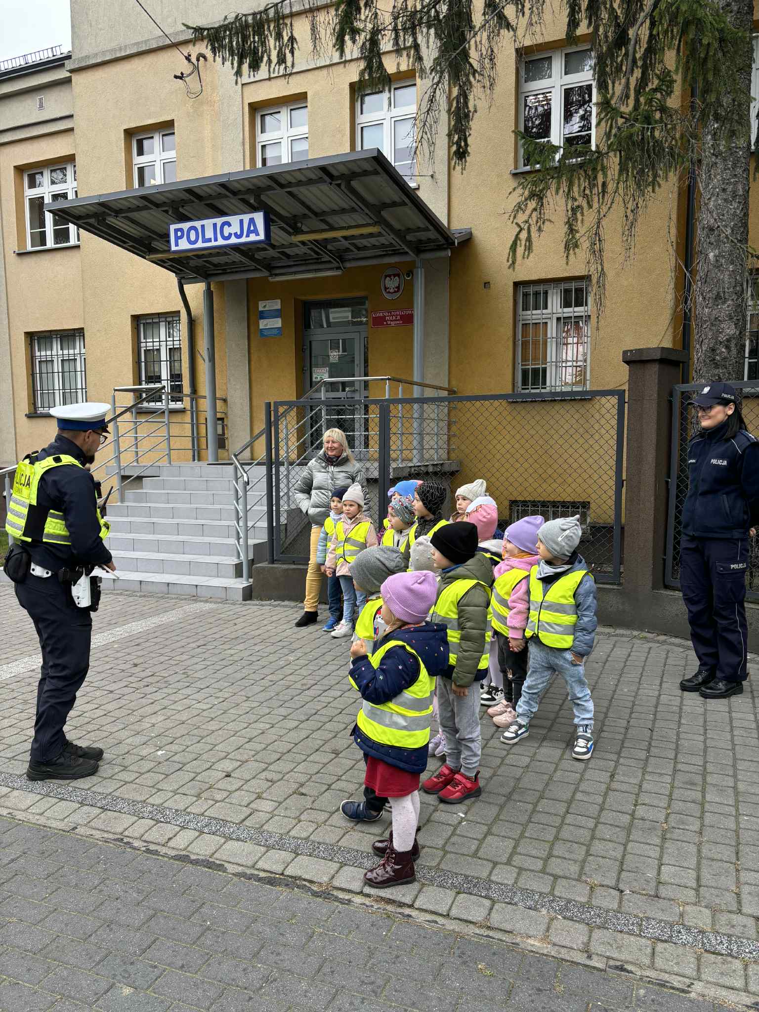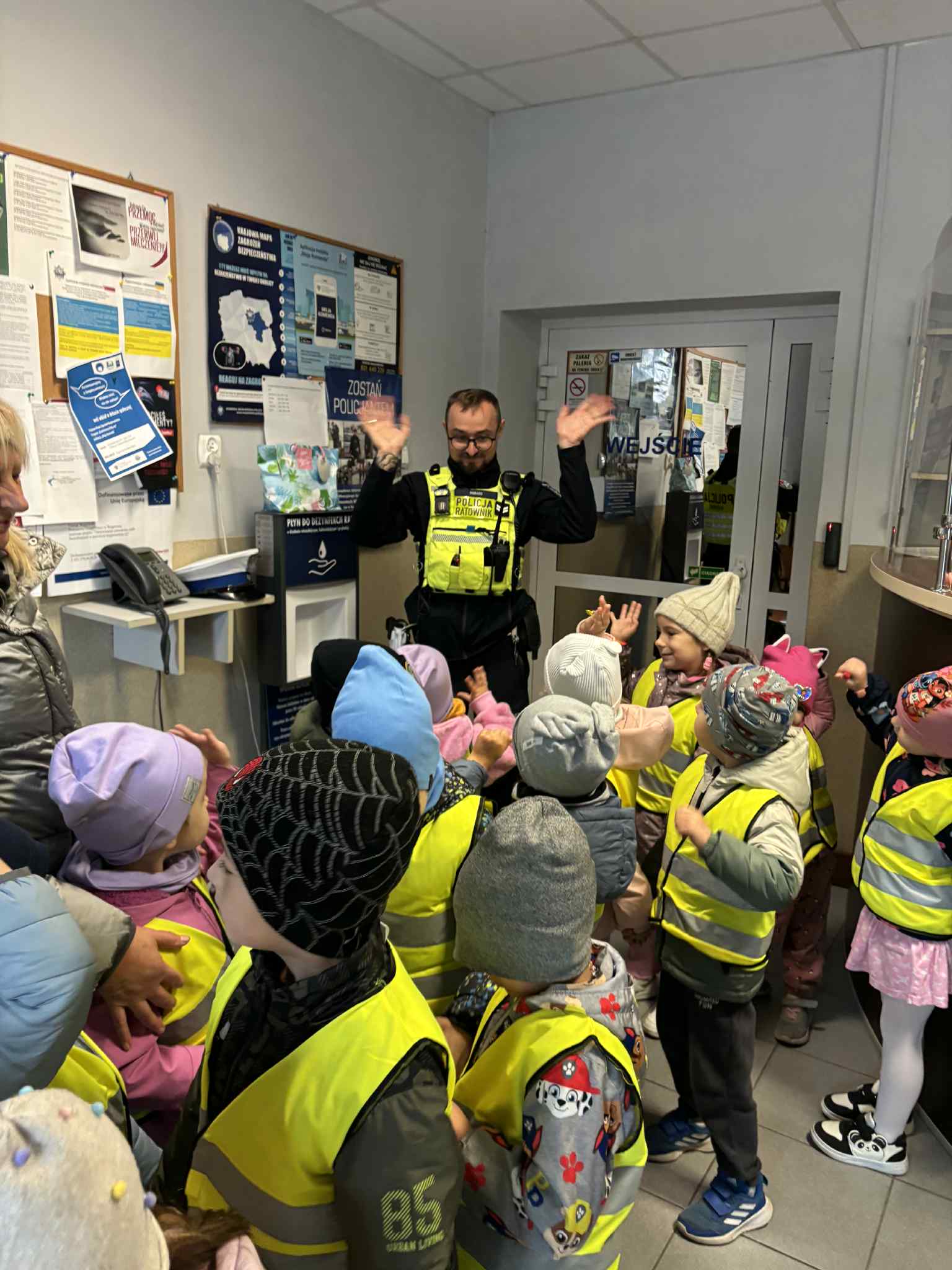 We wrześniu Pszczółki zapoznawały się z elementarnymi zasadami ruchu drogowego. Przed Powiatową Komedą Policji w Węgrowie spotkały się z policjantem Tomkiem i uczyły się poprawnego przechodzenia przez jezdnię. Pan policjant przybliżył dzieciom podstawowe zasady bezpiecznego poruszania się po drogach. Dowiedziały się , jak ważne jest właściwe zachowanie się uczestnika ruchu drogowego oraz konieczność noszenia ubrań i obuwia posiadającego elementy odblaskowe. Przedszkolaki zadawały pytania oraz dzieliły się doświadczeniami. Mamy nadzieję, że spotkanie na długo pozostanie w pamięci dzieci.
