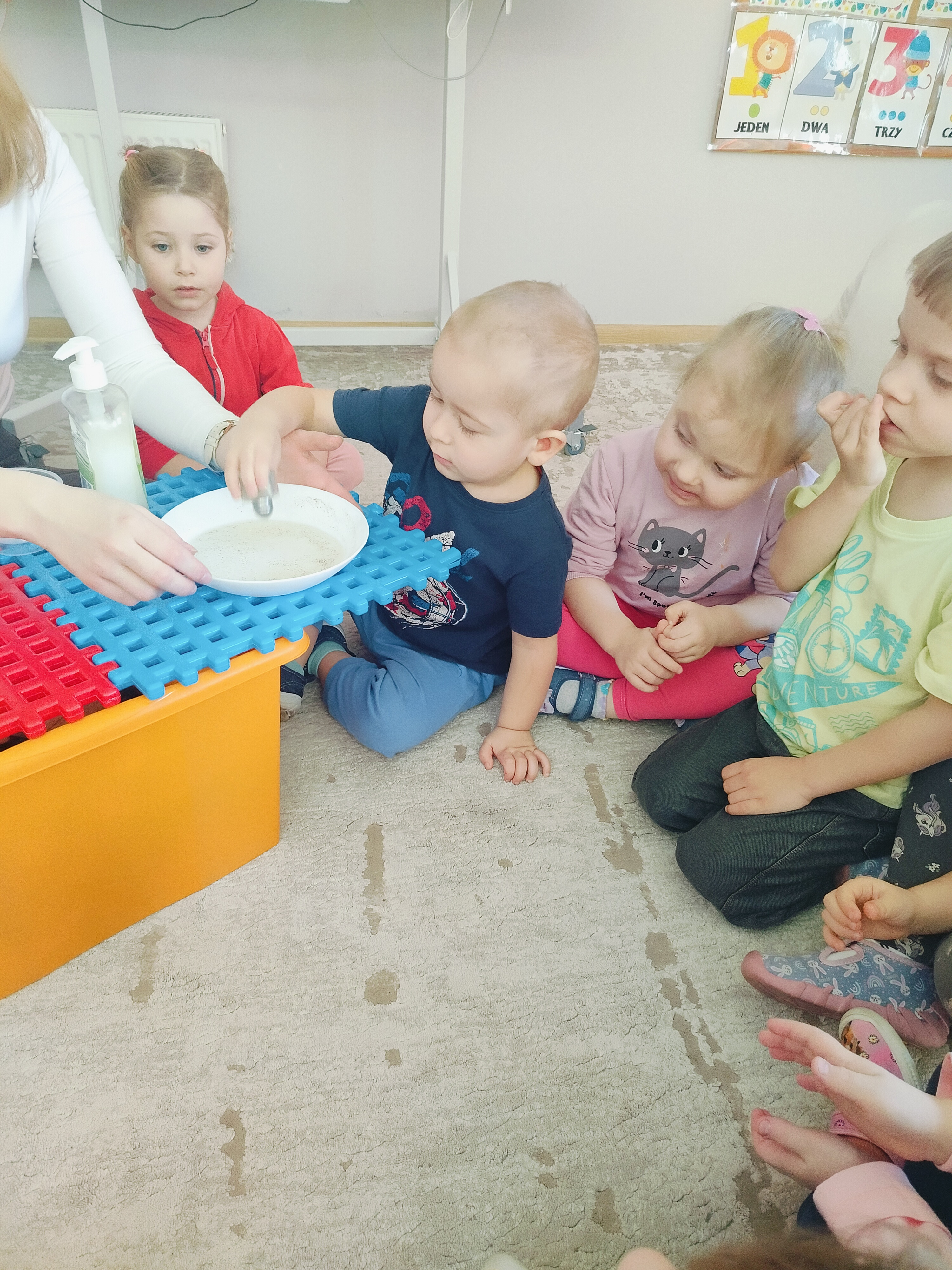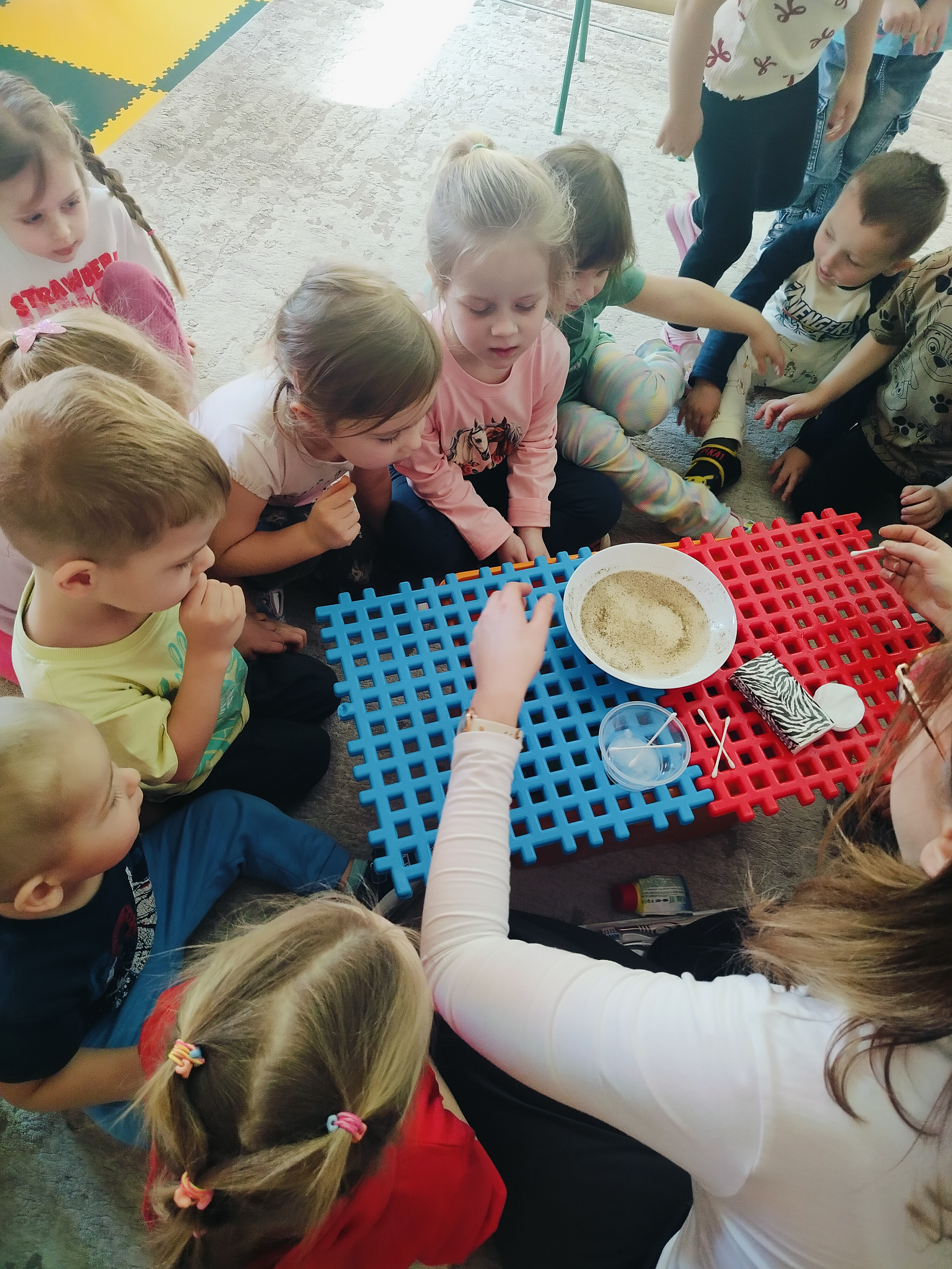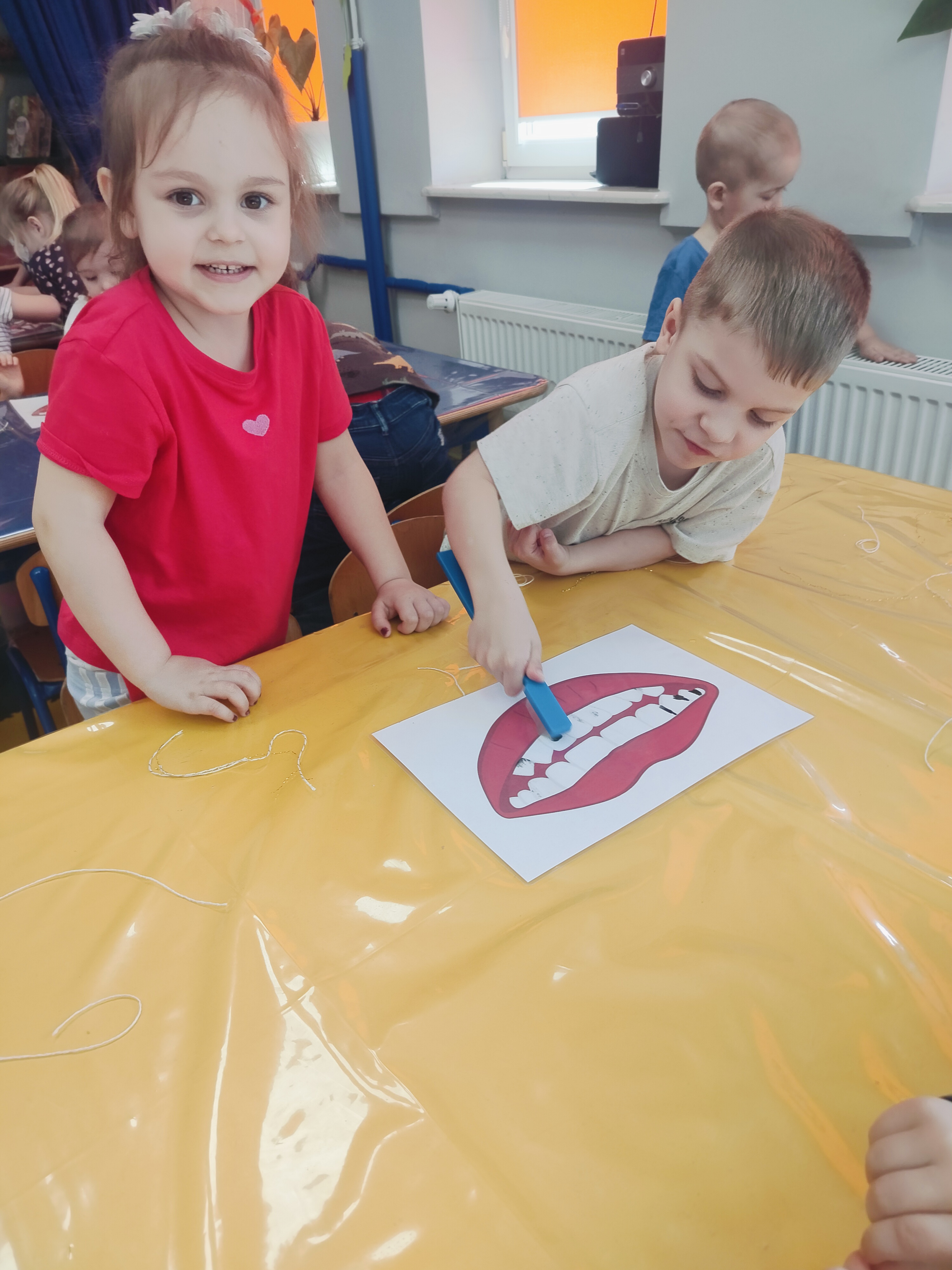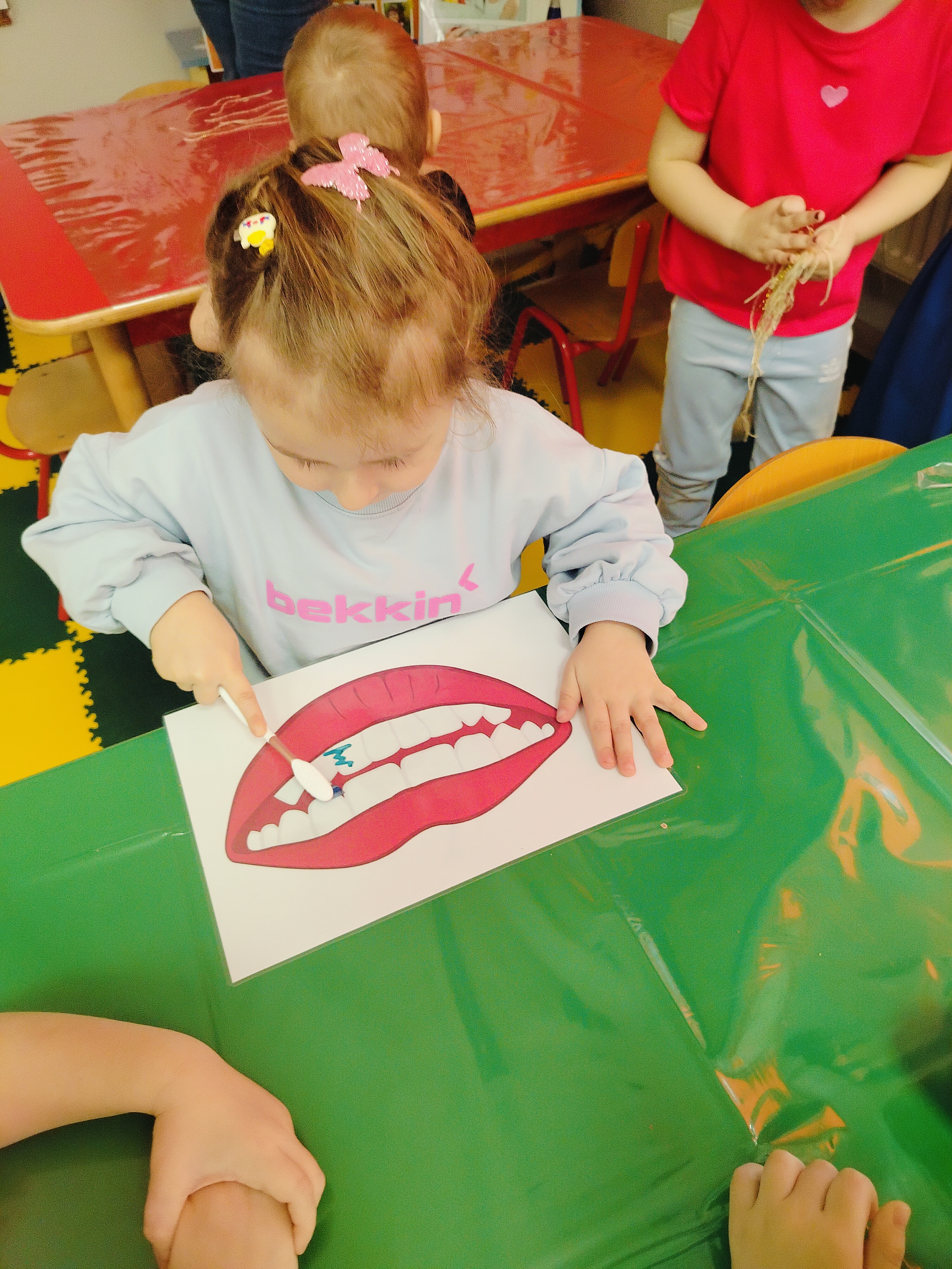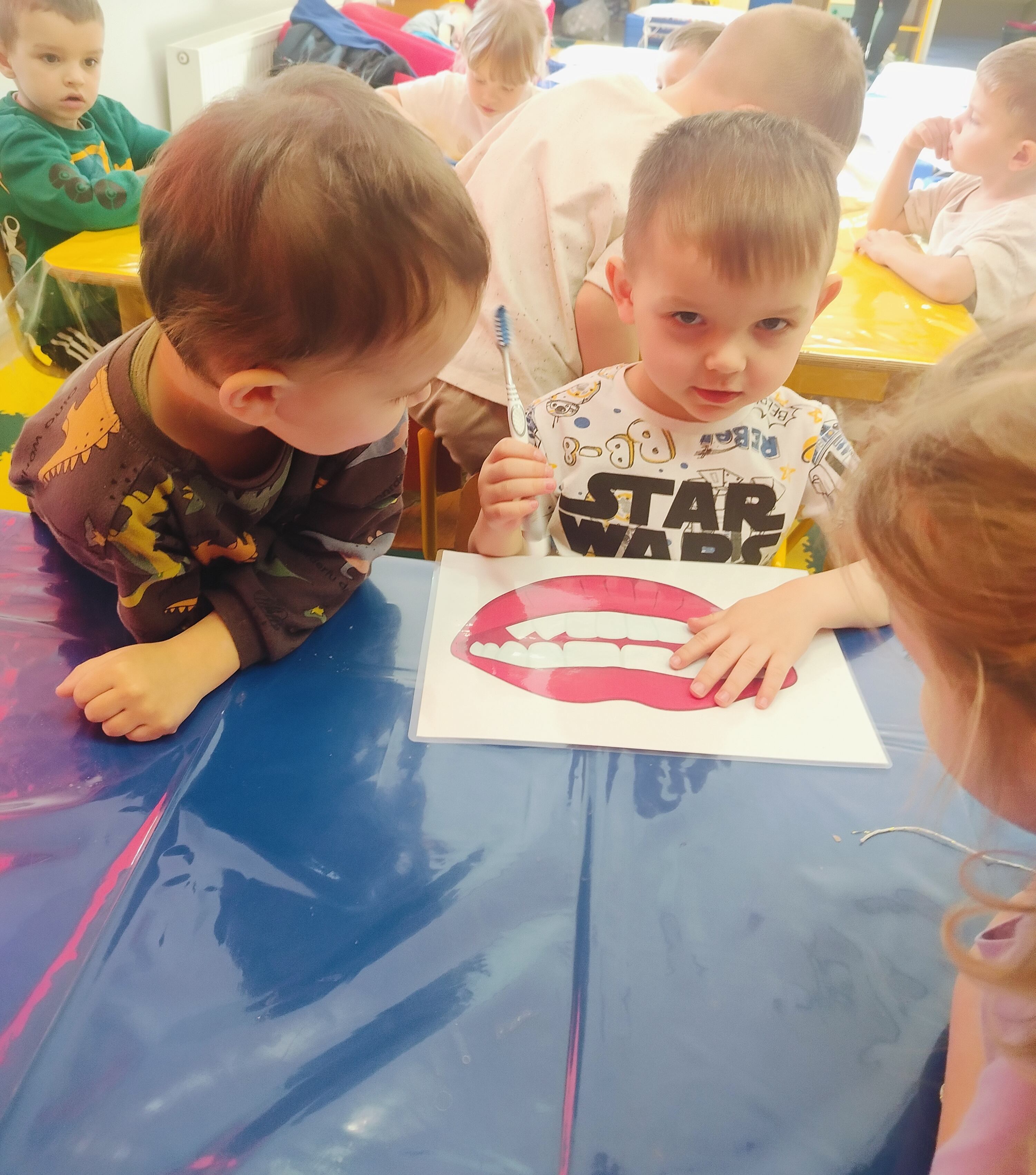 W naszej grupie rozmawialiśmy o tym, jak ważna jest higiena w codziennym życiu. Dzieci dowiedziały się, dlaczego dbanie o czystość pomaga nam zachować zdrowie i dobre samopoczucie. Wspólnie ćwiczyliśmy prawidłowe mycie zębów, utrwalając dobre nawyki. Przeprowadziliśmy także ciekawy eksperyment z pieprzem, wodą i mydłem, dzięki któremu dzieci mogły zobaczyć, jak działa mydło i dlaczego jest tak potrzebne w walce z zabrudzeniami i drobnoustrojami. Dbając o zdrowie, nie zapomnieliśmy również o ruchu – dużo ćwiczyliśmy, chodziliśmy na spacery oraz bawiliśmy się na placu zabaw na świeżym powietrzu. To był czas pełen nauki i dobrej zabawy!