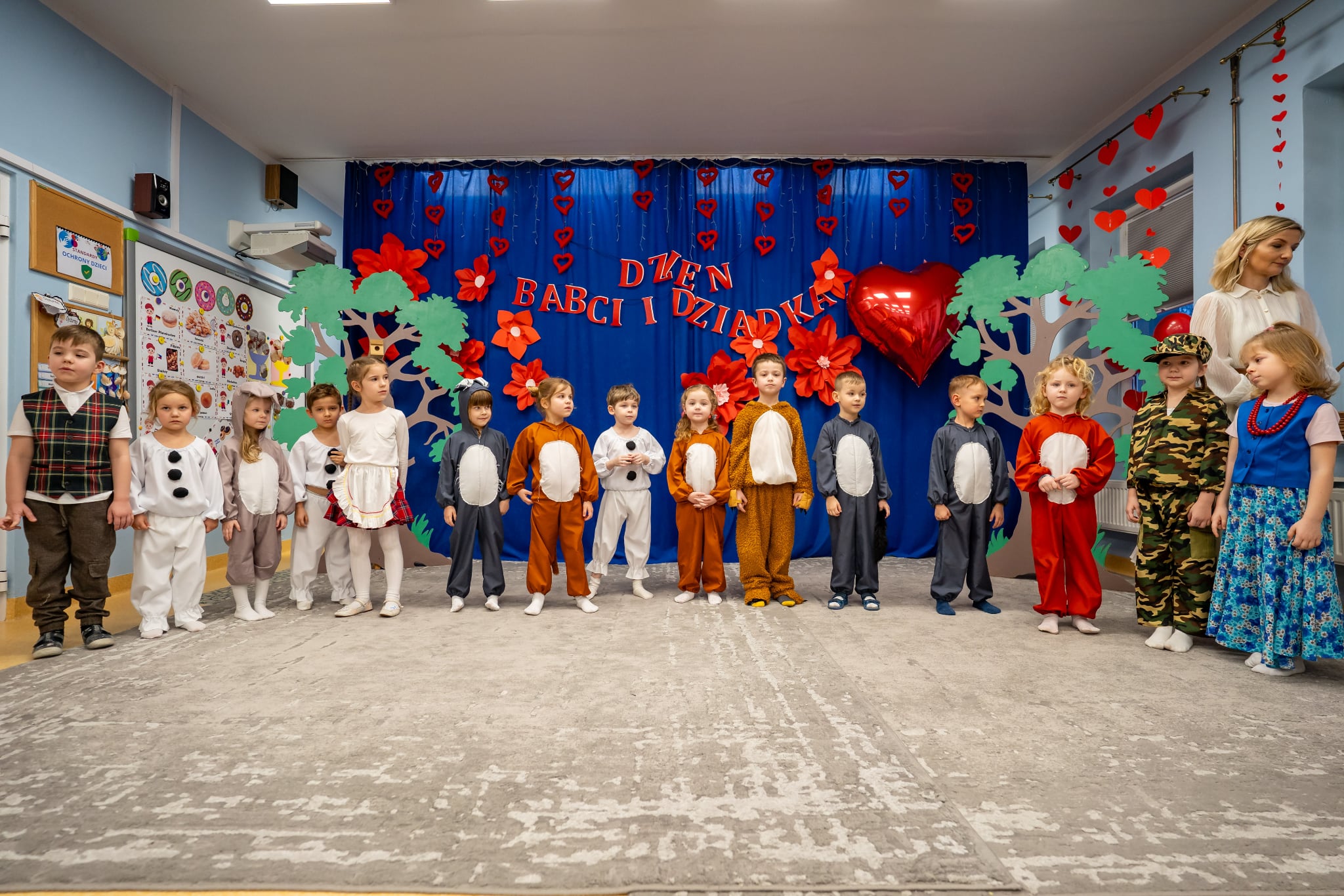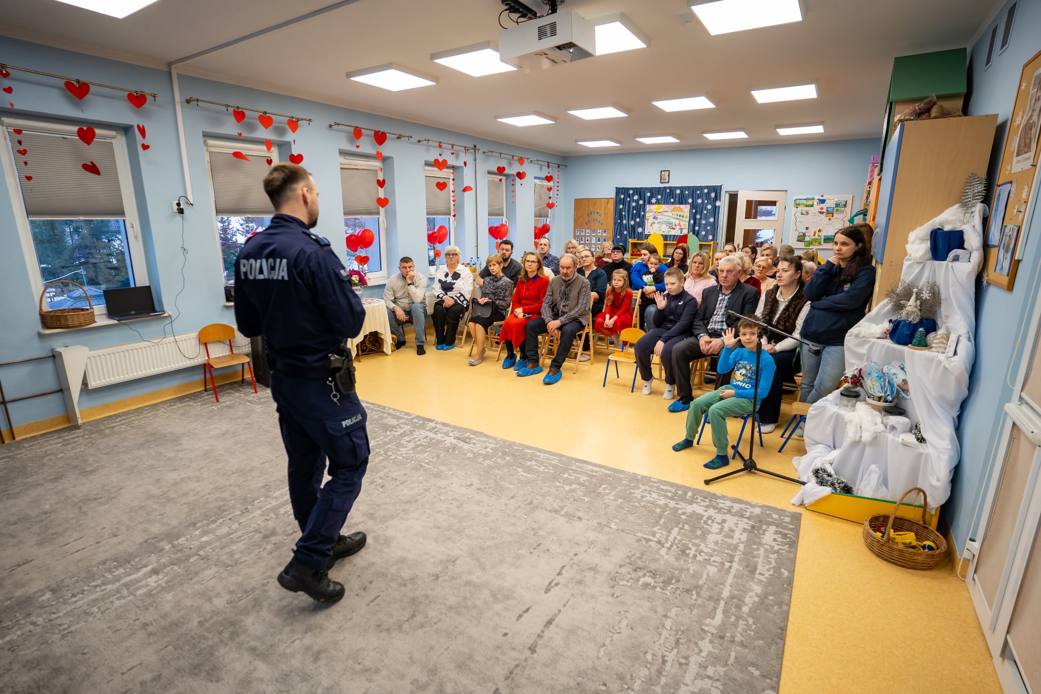 13 lutego 2026 Pszczółki przygotowały z okazji Dnia Babci i Dziadka przedstawienie pt. „Czerwony Kapturek i Bezpieczni Babcia i Dziadek” z elementami profilaktycznymi – Zagrożenie ze strony oszustów.Dzień Babci i Dziadka to doskonała okazja, by porozmawiać nie tylko o wspomnieniach, ale również o rzeczach ważnych i potrzebnych. Z tej okazji policjant z Powiatowej Komendy Policji w Węgrowie ,starszy sierżant Rafał Bałdyga przygotował dla „Dziadków” dzieci z naszego przedszkola prelekcję na temat zagrożeń ze strony oszustów. Podczas spotkania przytoczono konkretne przykłady oszustw na „ wnuczka”, na policjanta”, fałszywe link ido wygranych loterii itp. Rozłączenie połączenia nic nie kosztuje, a może uratować oszczędności i wiele nerwów, bo bezpieczeństwo zaczyna się od rozmowy, a Dzień Babci i Dziadka to idealny moment!