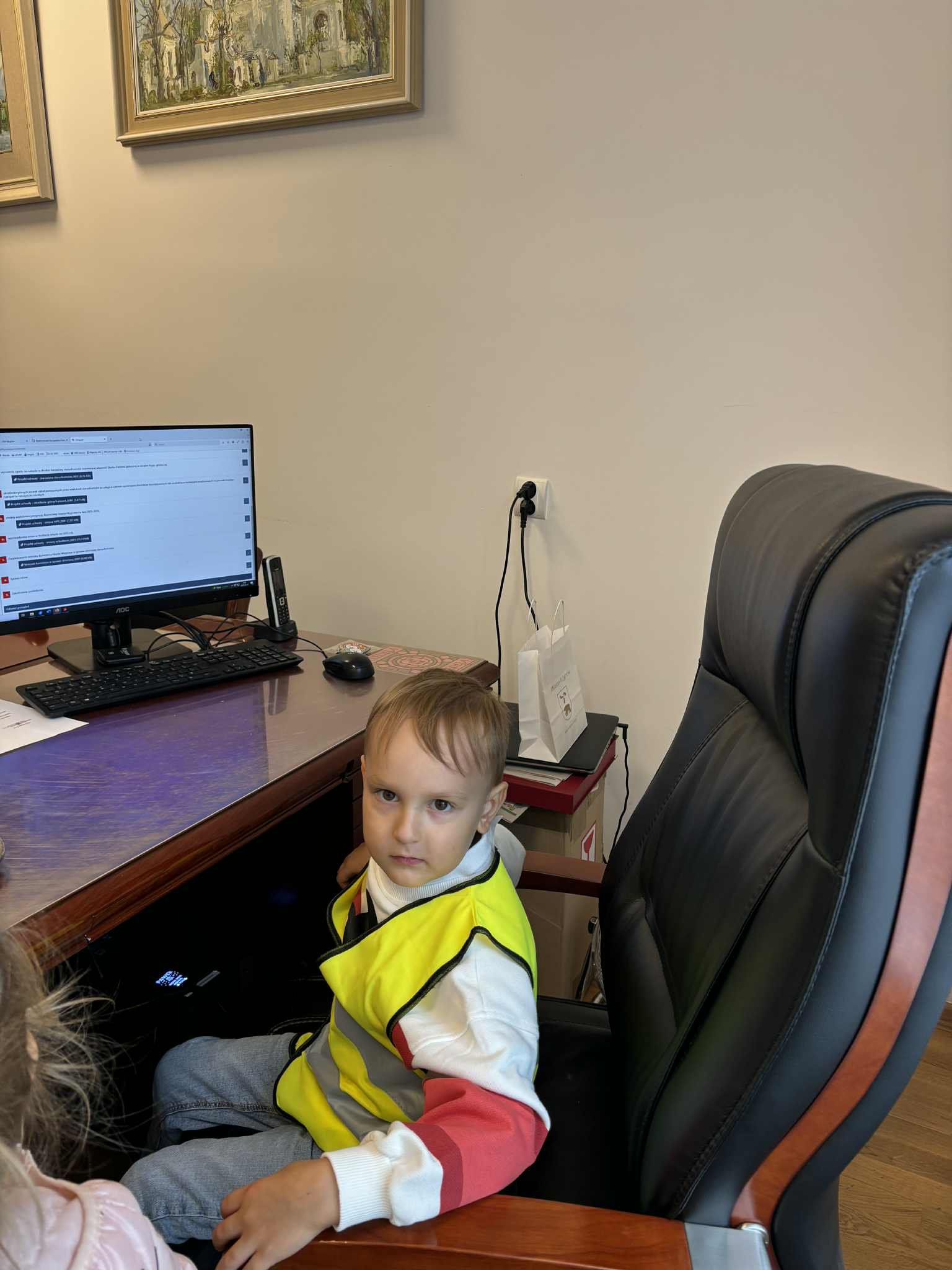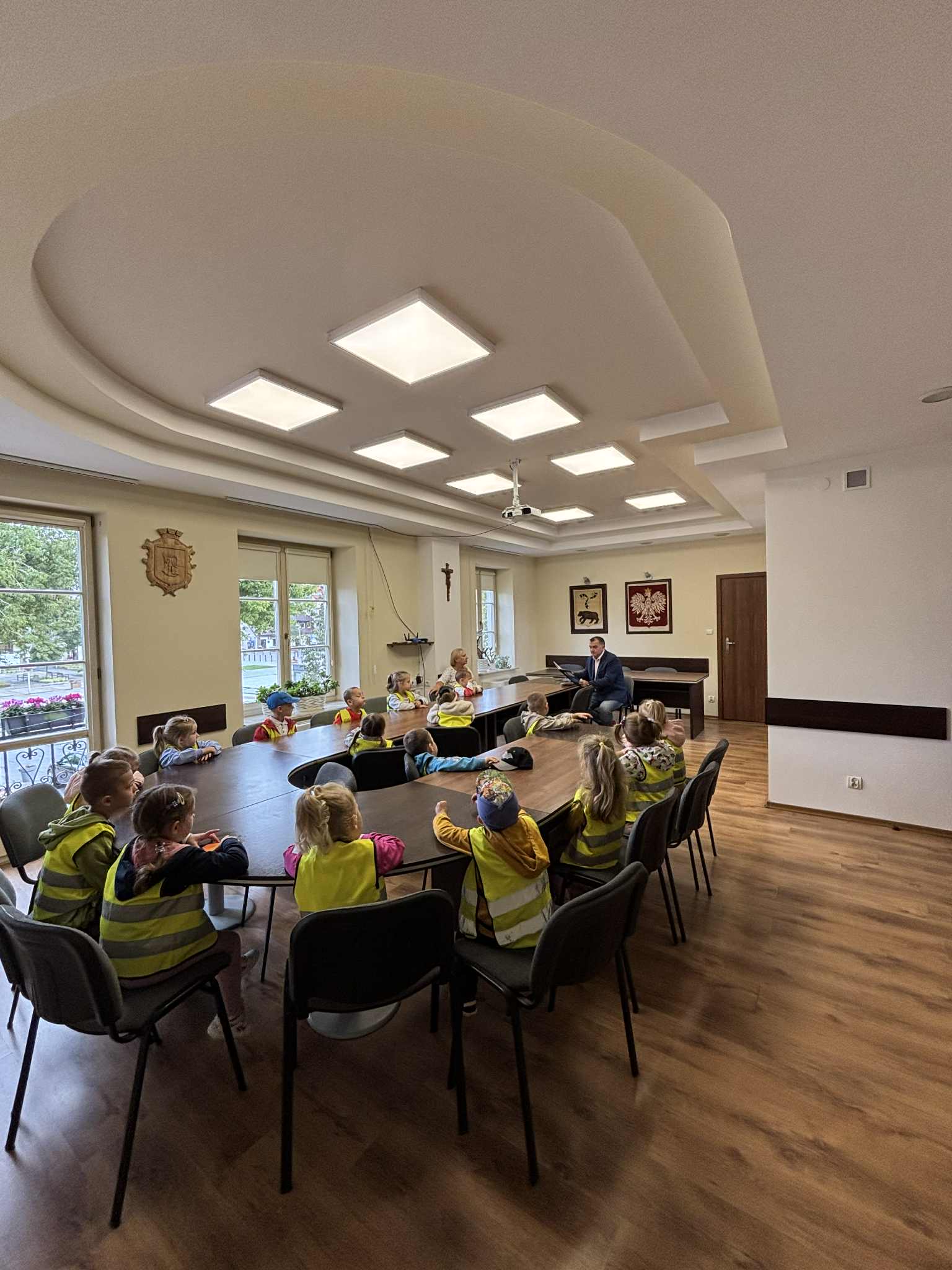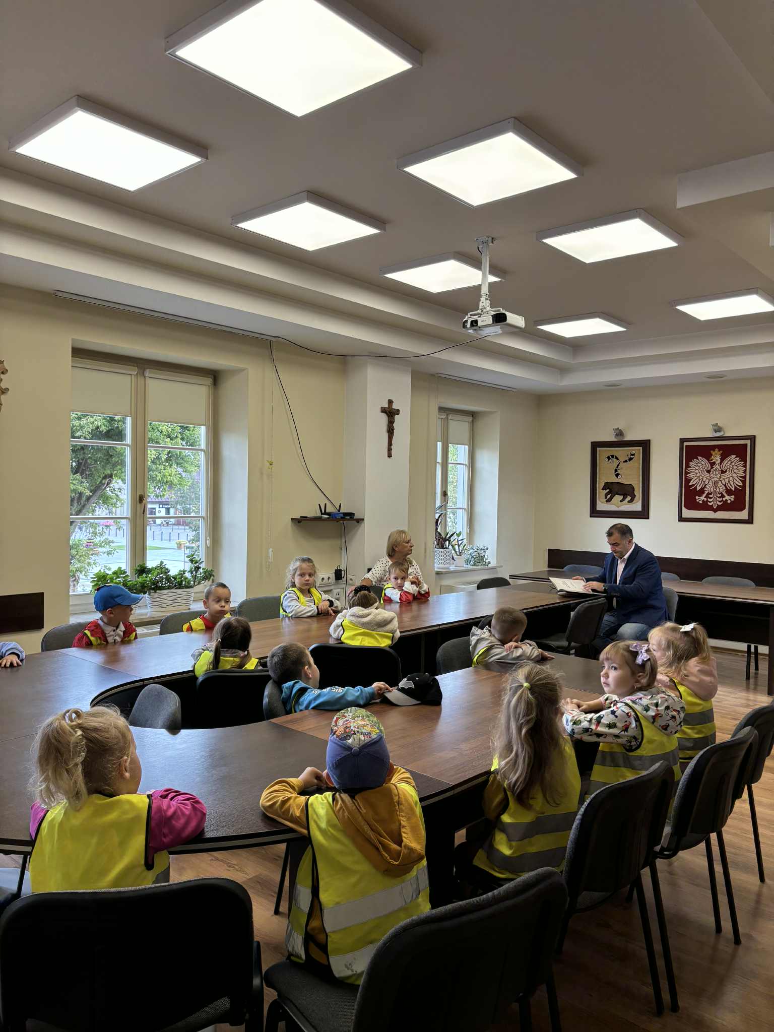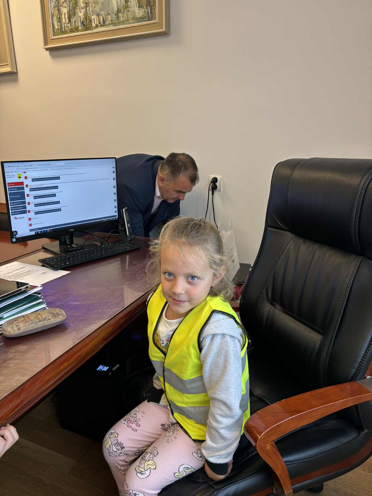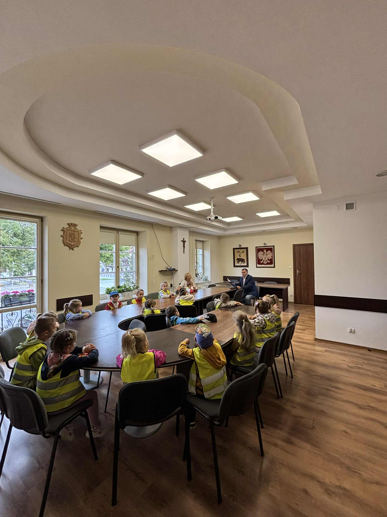 W minionym tygodniu dzieci z grupy Pszczółek odwiedziły w Urzędzie Miasta Węgrowa Burmistrza Miasta Pana Pawła Marchelę. Okazją do spotkania było realizacja treści na temat naszego miasta, jego zabytków i teraźniejszości. Pan Burmistrz przeczytał legendę o tajemniczym lustrze Twardowskiego z książki pt.” Węgrów miasto dziwów i czarów iście godnych samego Twardowskiego. Dzieci na dobre rozgościły się w gabinecie Pana Burmistrza, chętnie zasiadały w fotelu najważniejszej osoby w mieście. Jednocześnie przedszkolaki włączyły władze miasta i pracowników urzędu do zabawy z okazji Dnia Kropki. ”Pszczółki” obdarowane w przybory do pisania i odblaski radosne wróciły do przedszkola.