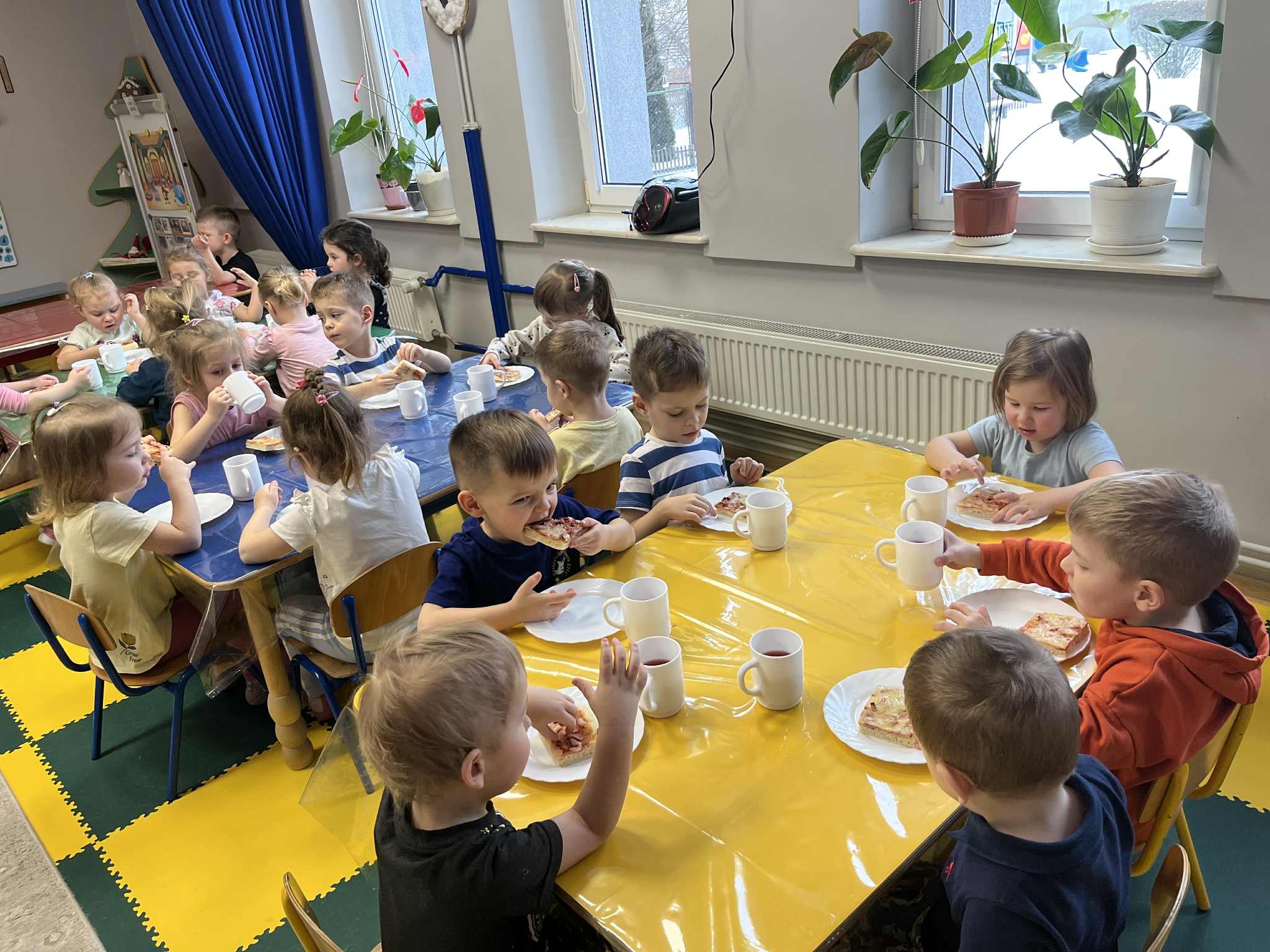 Dziś postawiliśmy na wspólne gotowanie z okazji Dnia Pizzy! Przygotowaliśmy jedną, wyjątkową pizzę – pełną ulubionych składników i dobrej energii. Wspólna praca smakowała tak samo dobrze jak efekt końcowy!