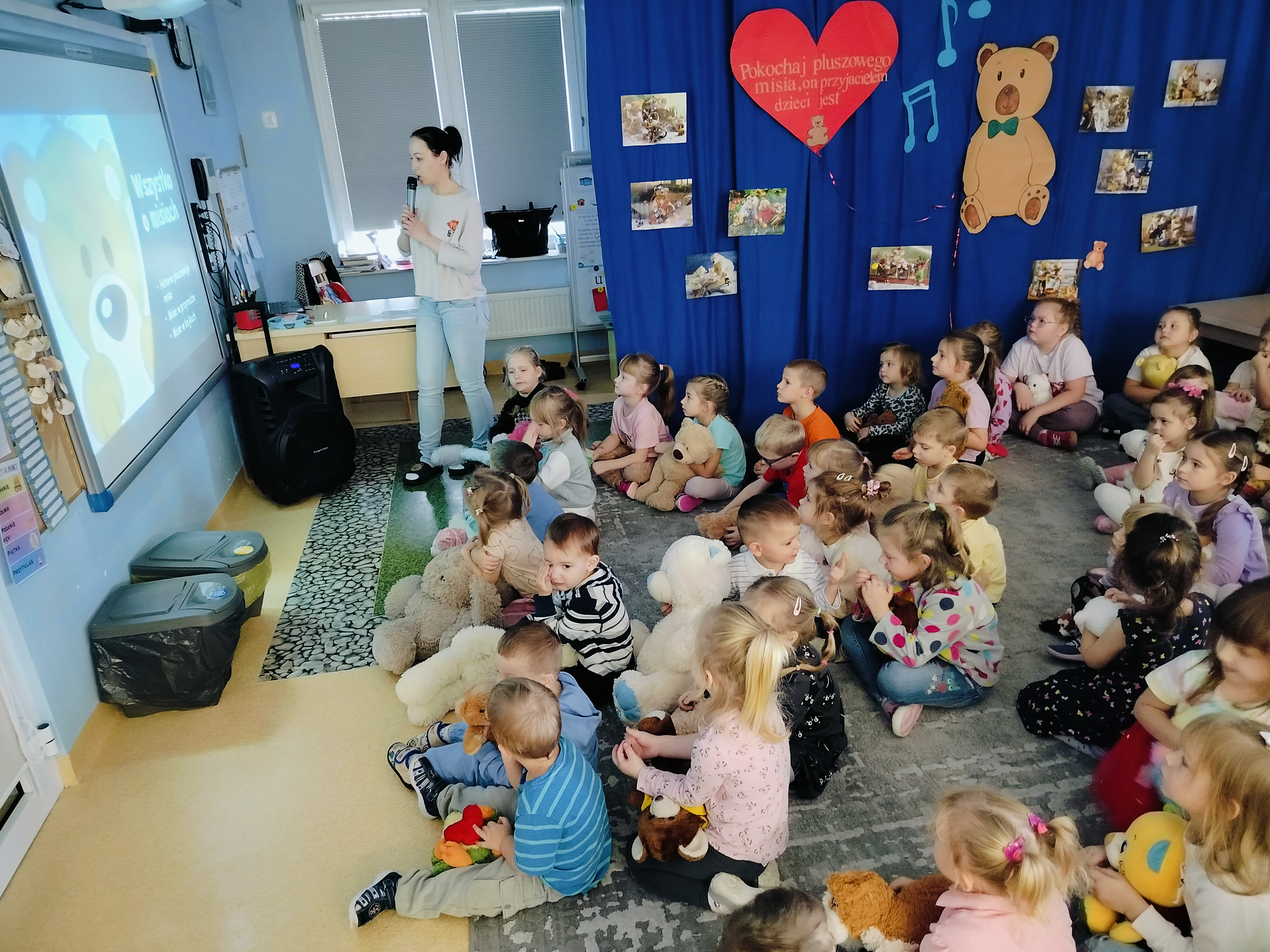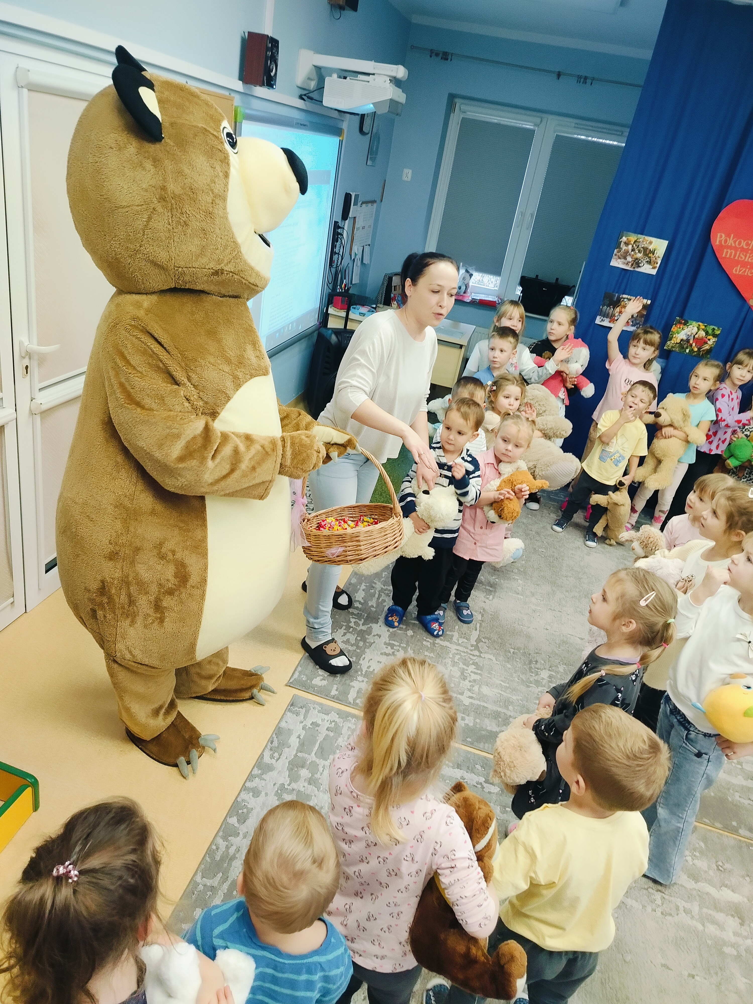 25 listopada w naszym przedszkolu świętowaliśmy Dzień Pluszowego Misia. Dzieci przyniosły swoje ukochane misie, które towarzyszyły im przez cały dzień. Podczas celebracji odwiedził nas również wyjątkowy puchaty przyjaciel.