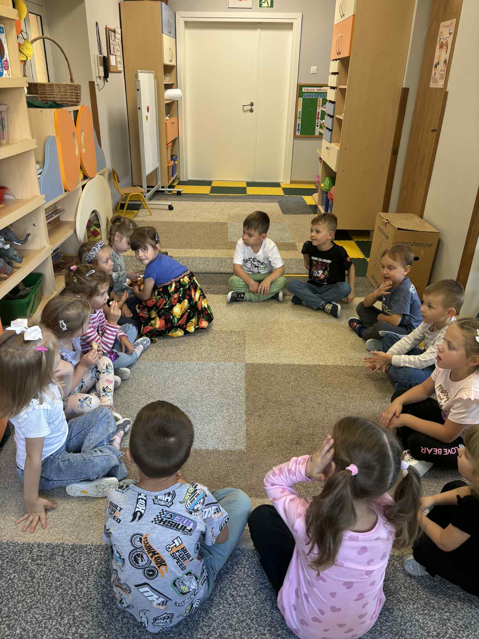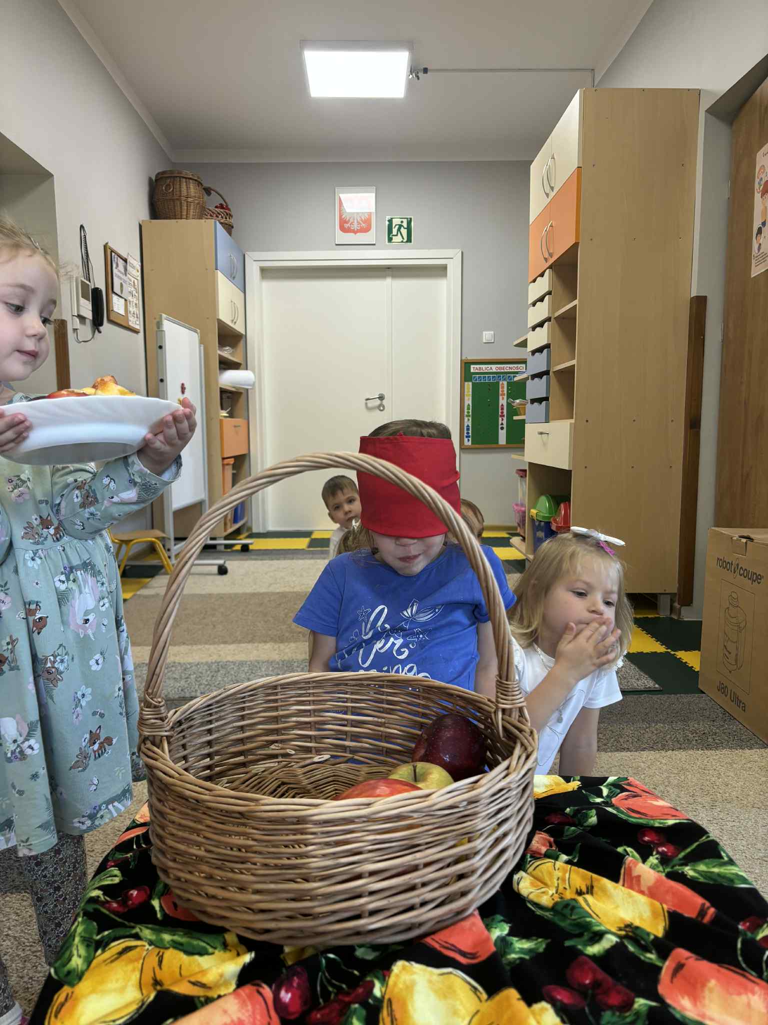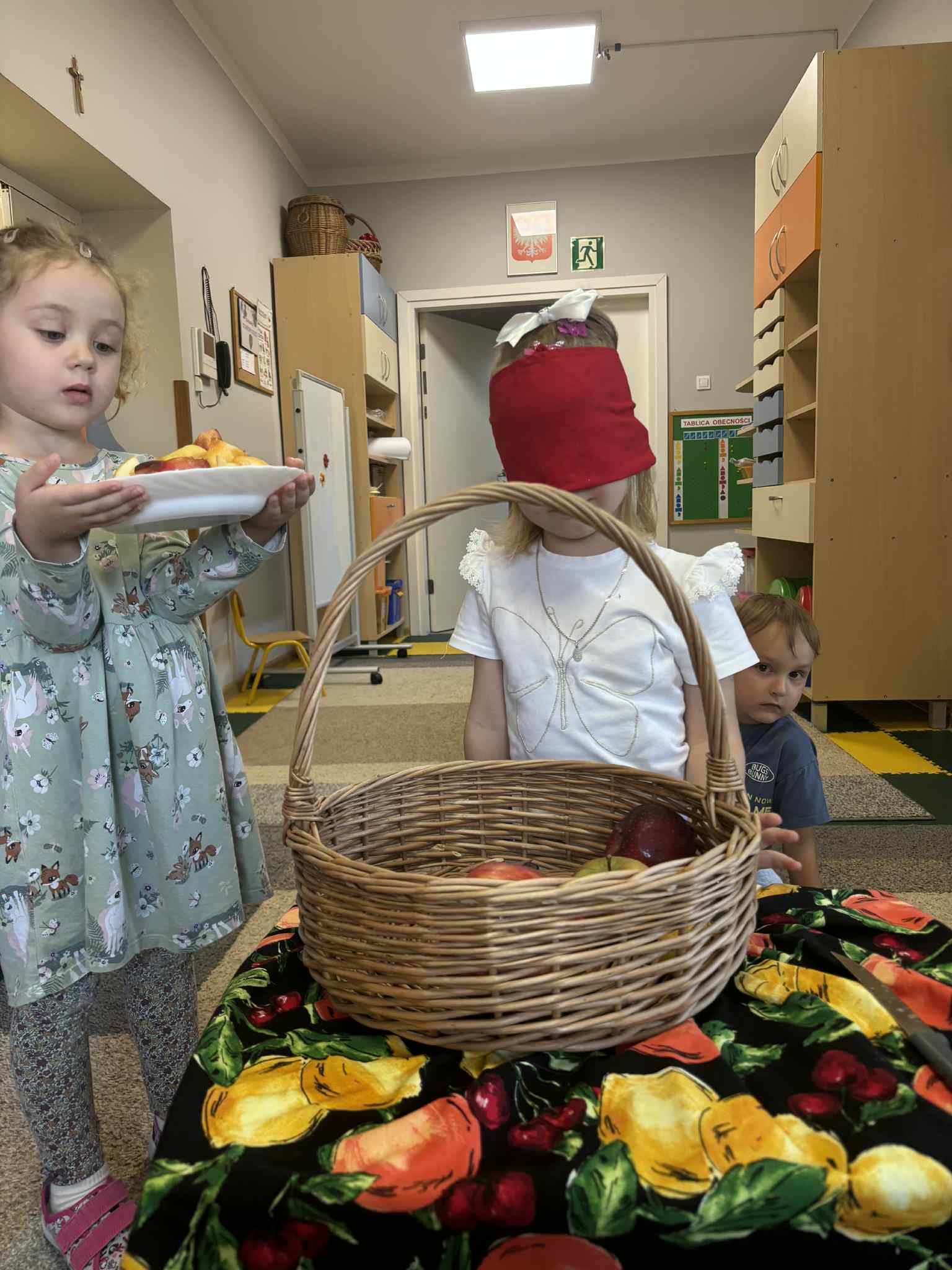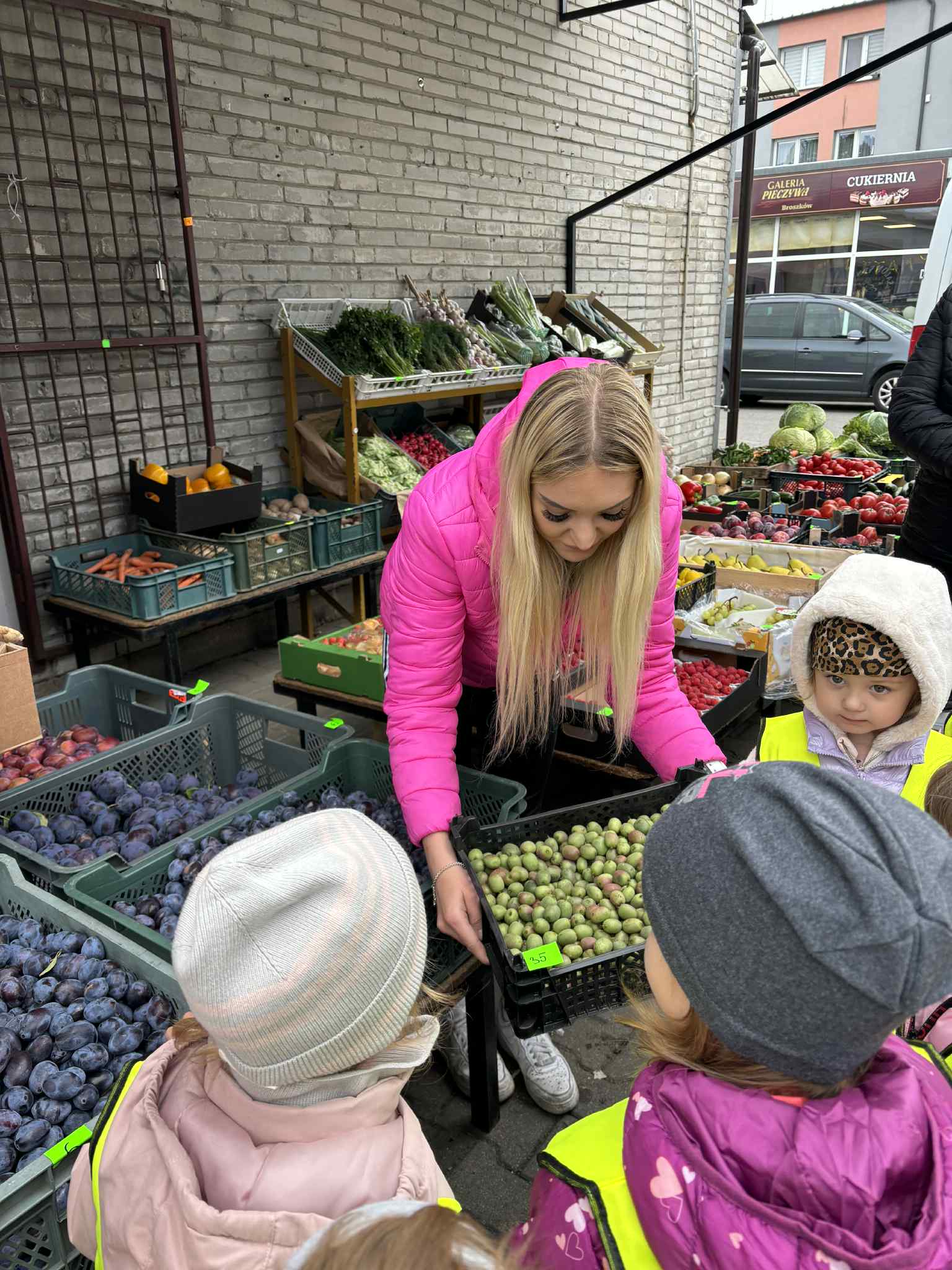 Jesień to pora roku, która obfituje w wiele kolorowych i soczystych owoców, które dojrzewają w naszych sadach. Pszczółki wyruszyły we wrześniu w ,,poszukiwaniu witamin”. Odwiedzili stragan owocowo-warzywny na ulicy Rynkowej .Przedszkolaki poszerzały swoją wiedzę o jabłkach: poznawały budowę owocu, właściwości zdrowotne, gatunki jabłek, kolory, kształty, zapachy. Nie zabrakło również degustacji owoców – kiwi, którymi poczęstowała nas właścicielka straganu.