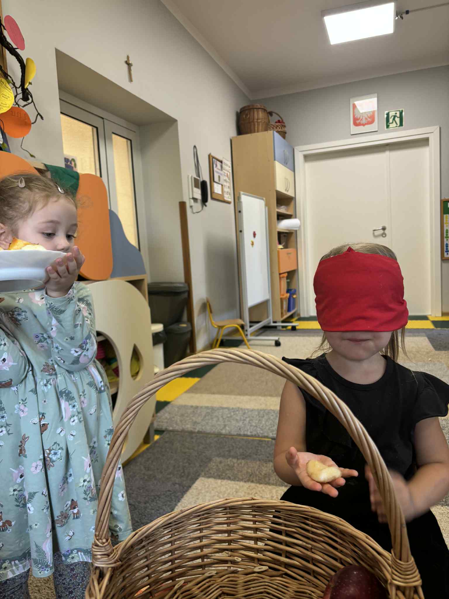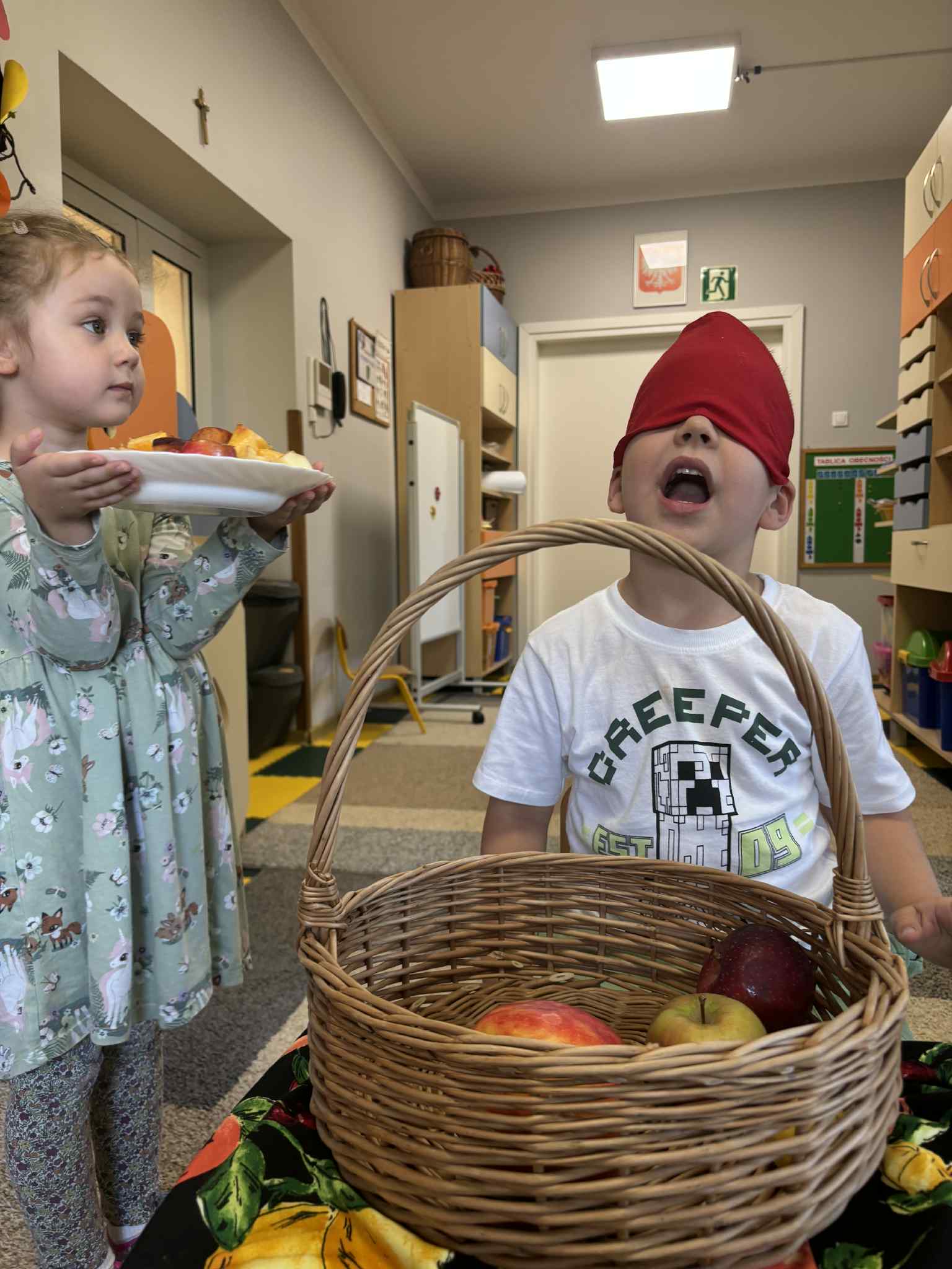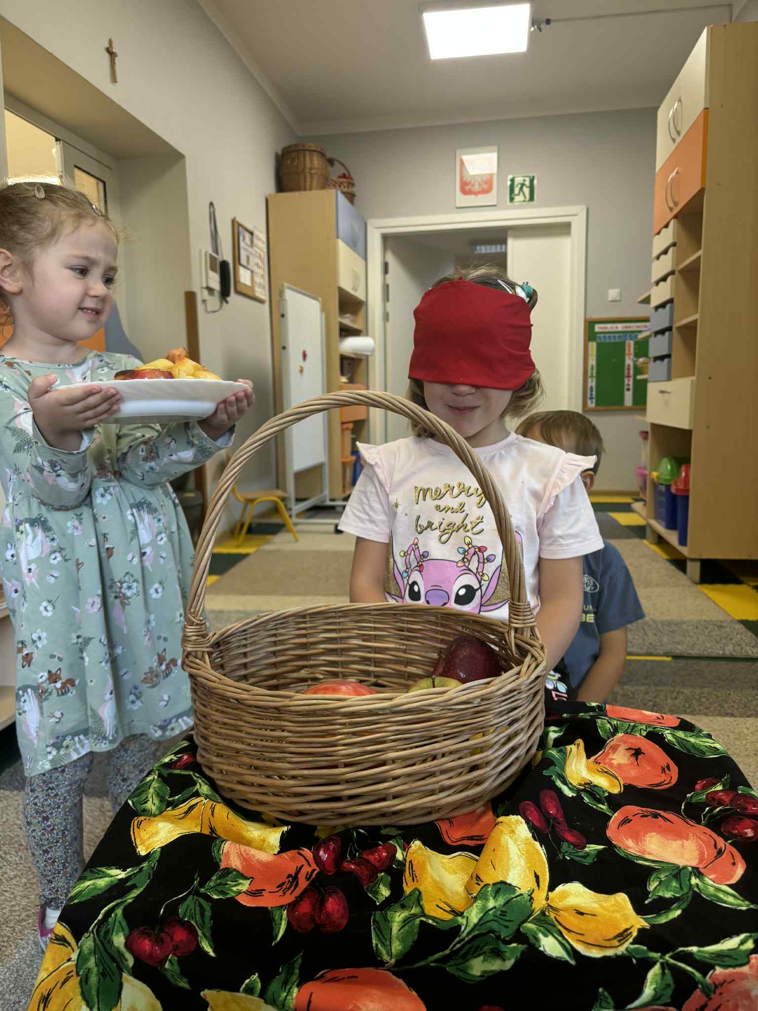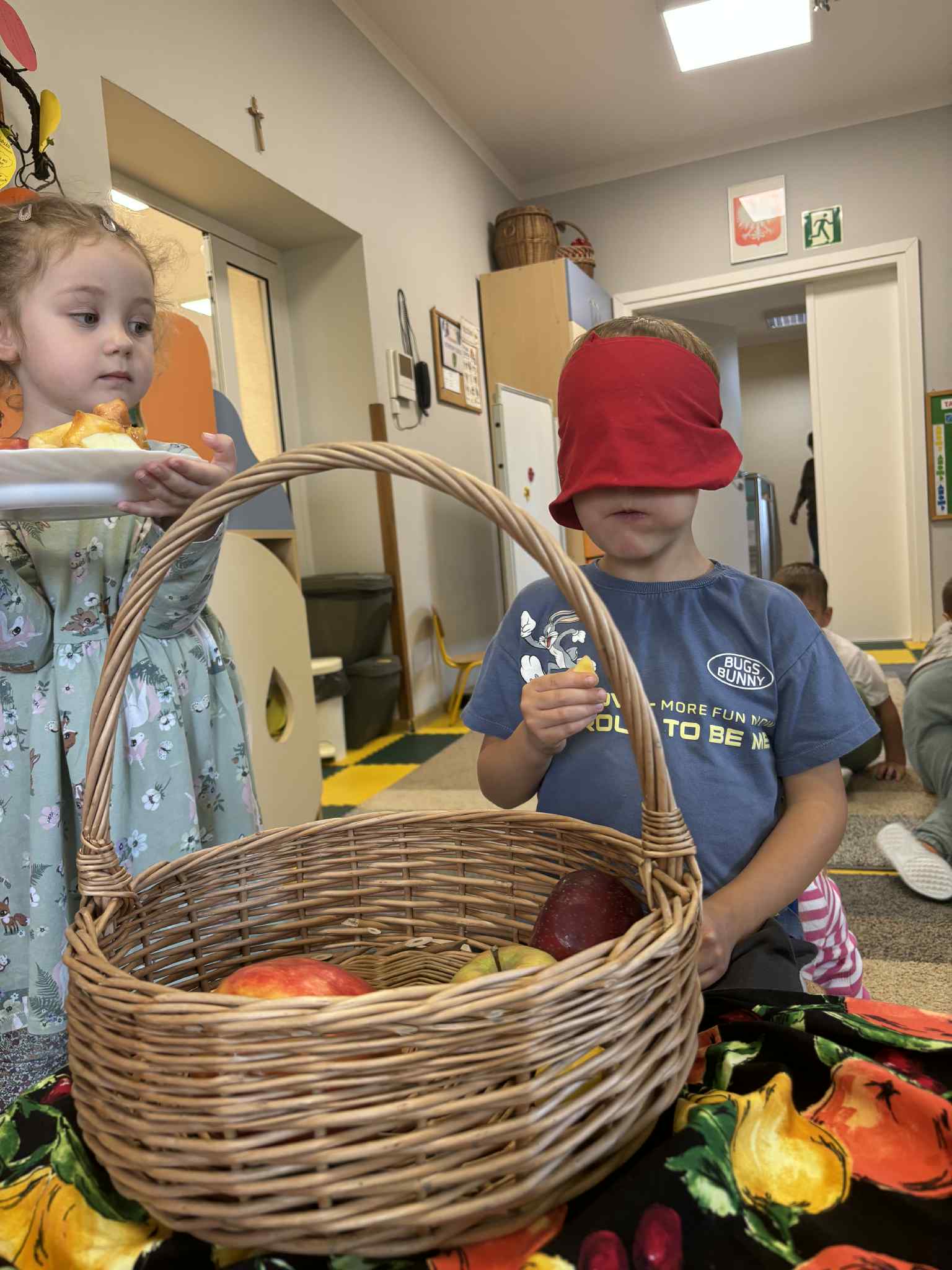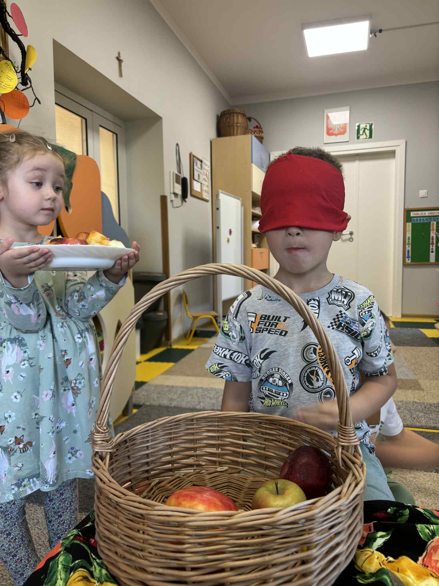 Jesień to pora roku, która obfituje w wiele kolorowych i soczystych owoców, które dojrzewają w naszych sadach. Pszczółki wyruszyły we wrześniu w ,,poszukiwaniu witamin”. Odwiedzili stragan owocowo-warzywny na ulicy Rynkowej .Przedszkolaki poszerzały swoją wiedzę o jabłkach: poznawały budowę owocu, właściwości zdrowotne, gatunki jabłek, kolory, kształty, zapachy. Nie zabrakło również degustacji owoców – kiwi, którymi poczęstowała nas właścicielka straganu.