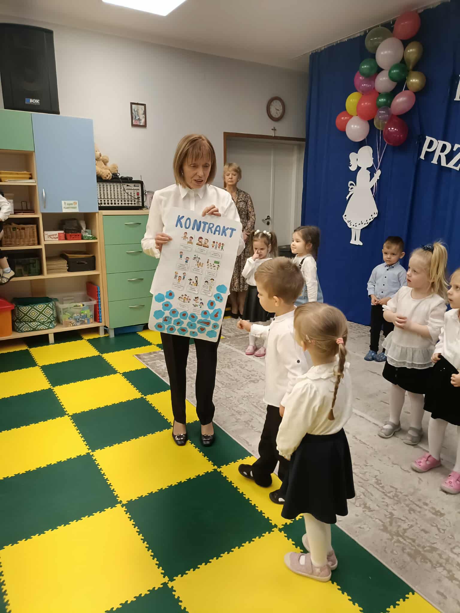 28 listopada 2025 roku w naszym przedszkolu odbyła się wyjątkowa i uroczysta chwila - Pasowanie na Przedszkolaka. Grupa Małych Odkrywców zaprezentowała występ, podczas którego śpiewała piosenki, recytowała wiersz oraz tańczyła. Wręczyła również oficjalny kontrakt na ręce Pani Dyrektor. Następnie każde dziecko zostało oficjalnie pasowane na przedszkolaka i otrzymało medal, balonik oraz upominek. To był pełen wzruszeń i radości dzień, w którym maluchy z dumą dołączyły do społeczności przedszkolnej.