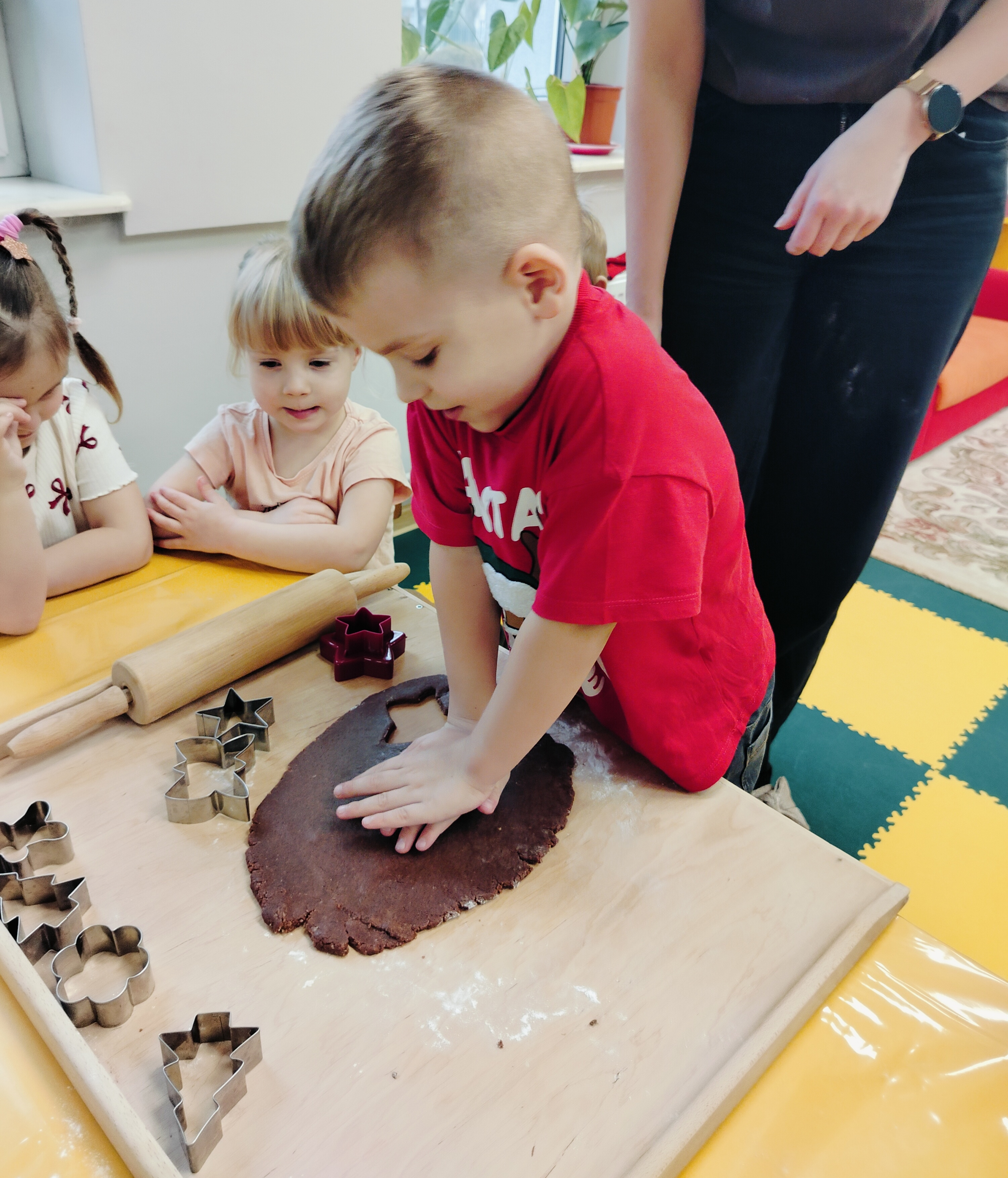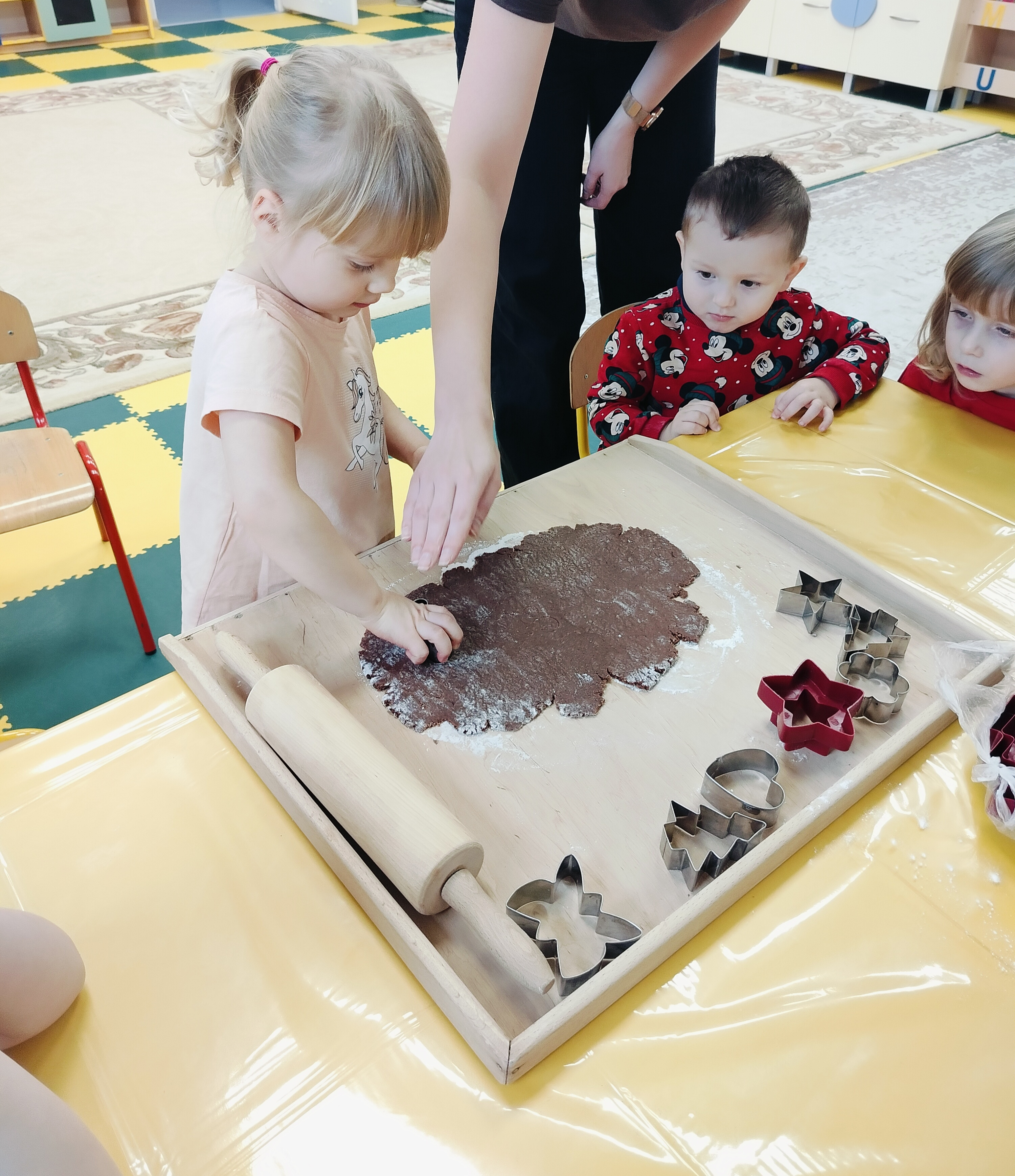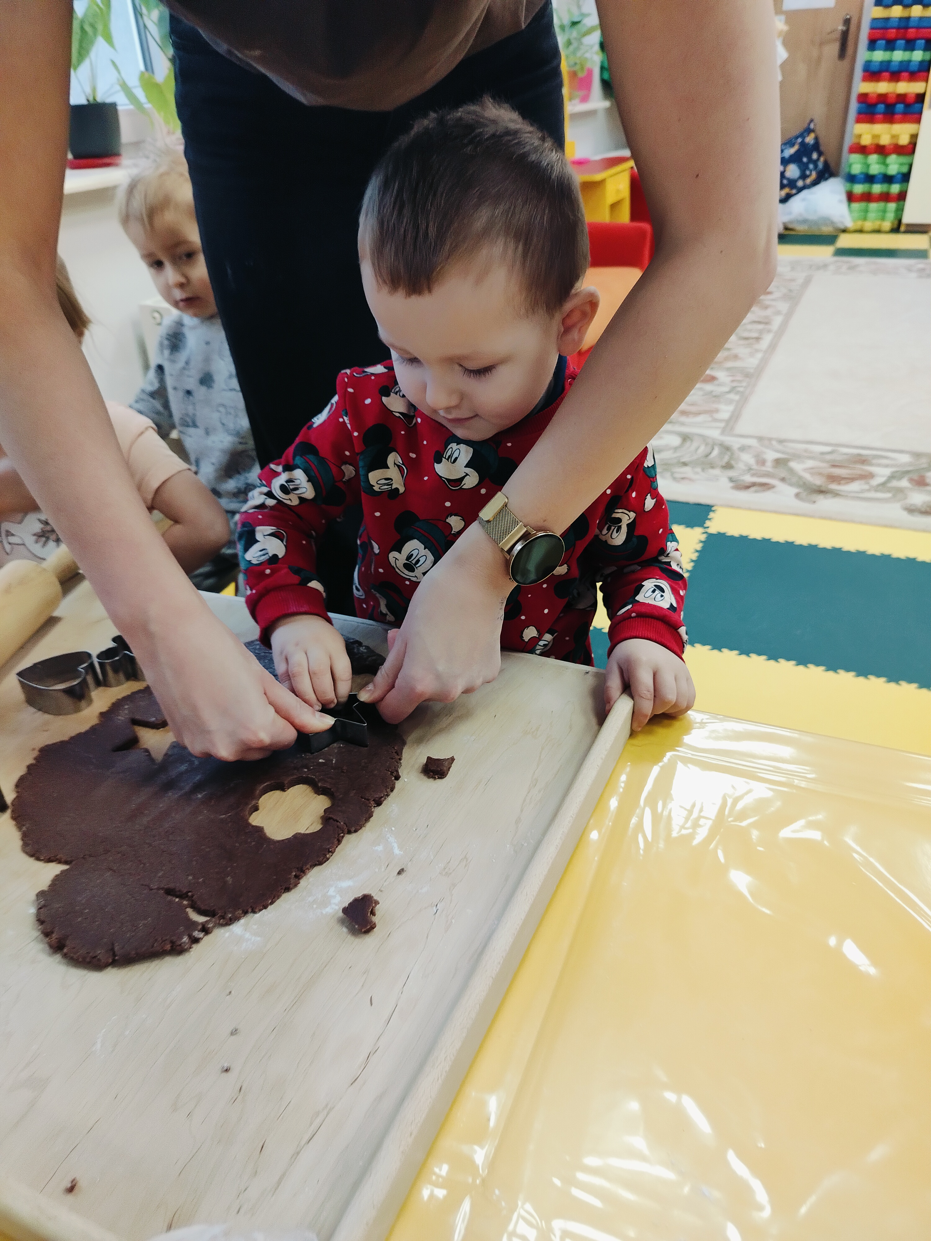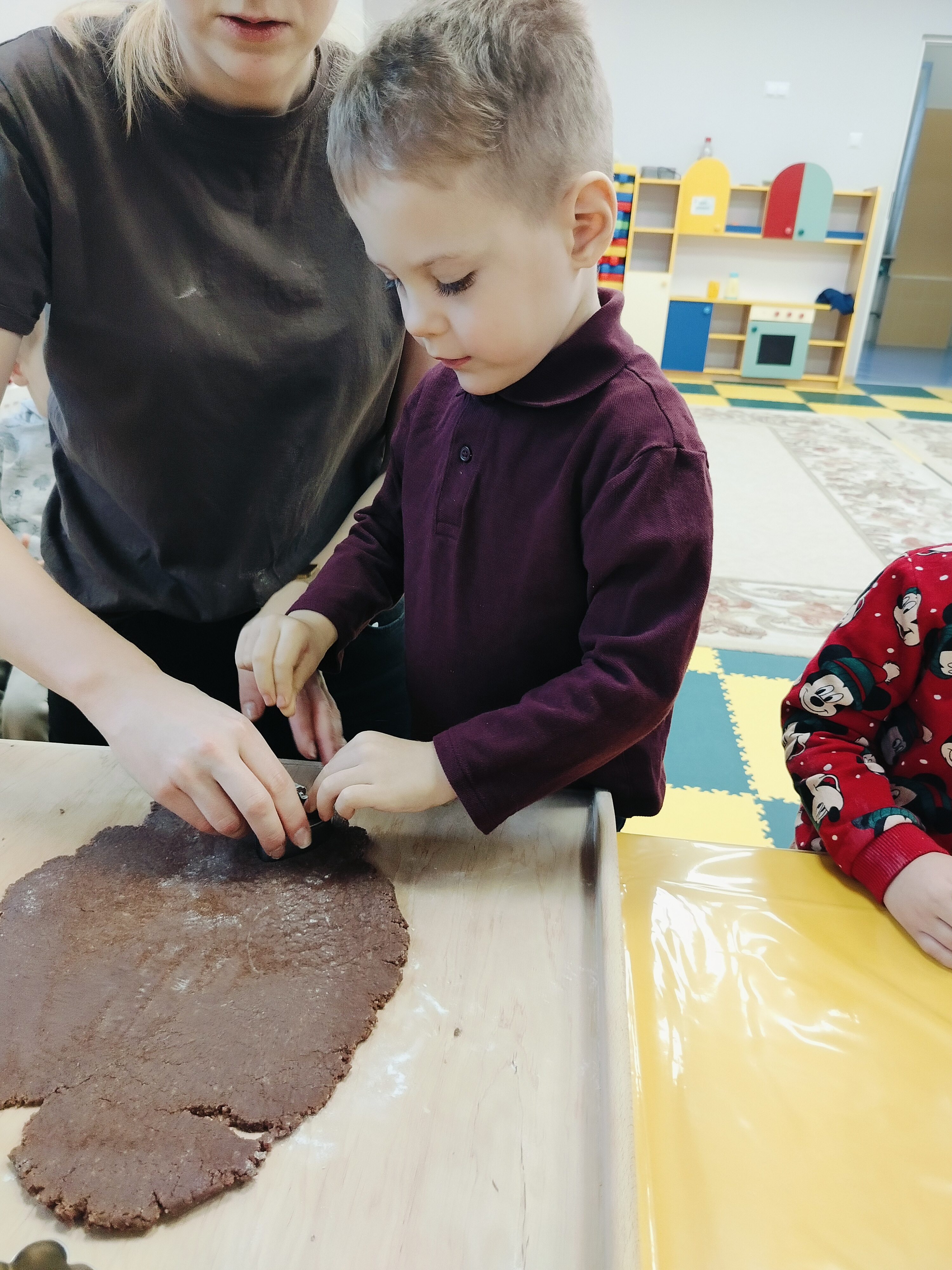 Pieczenie pierniczków to dla naszych przedszkolaków wyjątkowy czas. Dzieci z wielkim zaangażowaniem pracowały przy pachnącym cieście, ugniatając je i wycinając kształty. W całej sali unosił się zapach korzennych przypraw, a w tle słychać było kolędy. To piękna, świąteczna tradycja, która łączy pracę, radość i wspólne przeżywanie świąt.