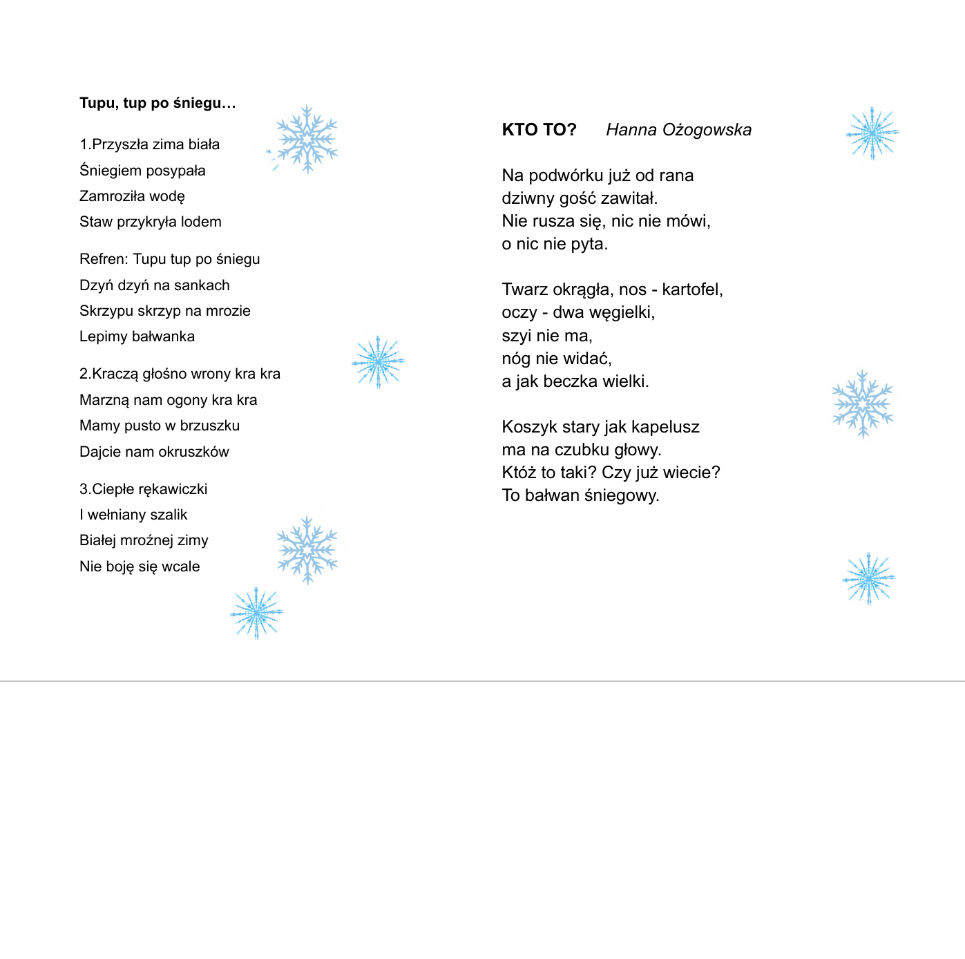 Piosenka oraz wiersz do nauki na miesiąc styczeń.