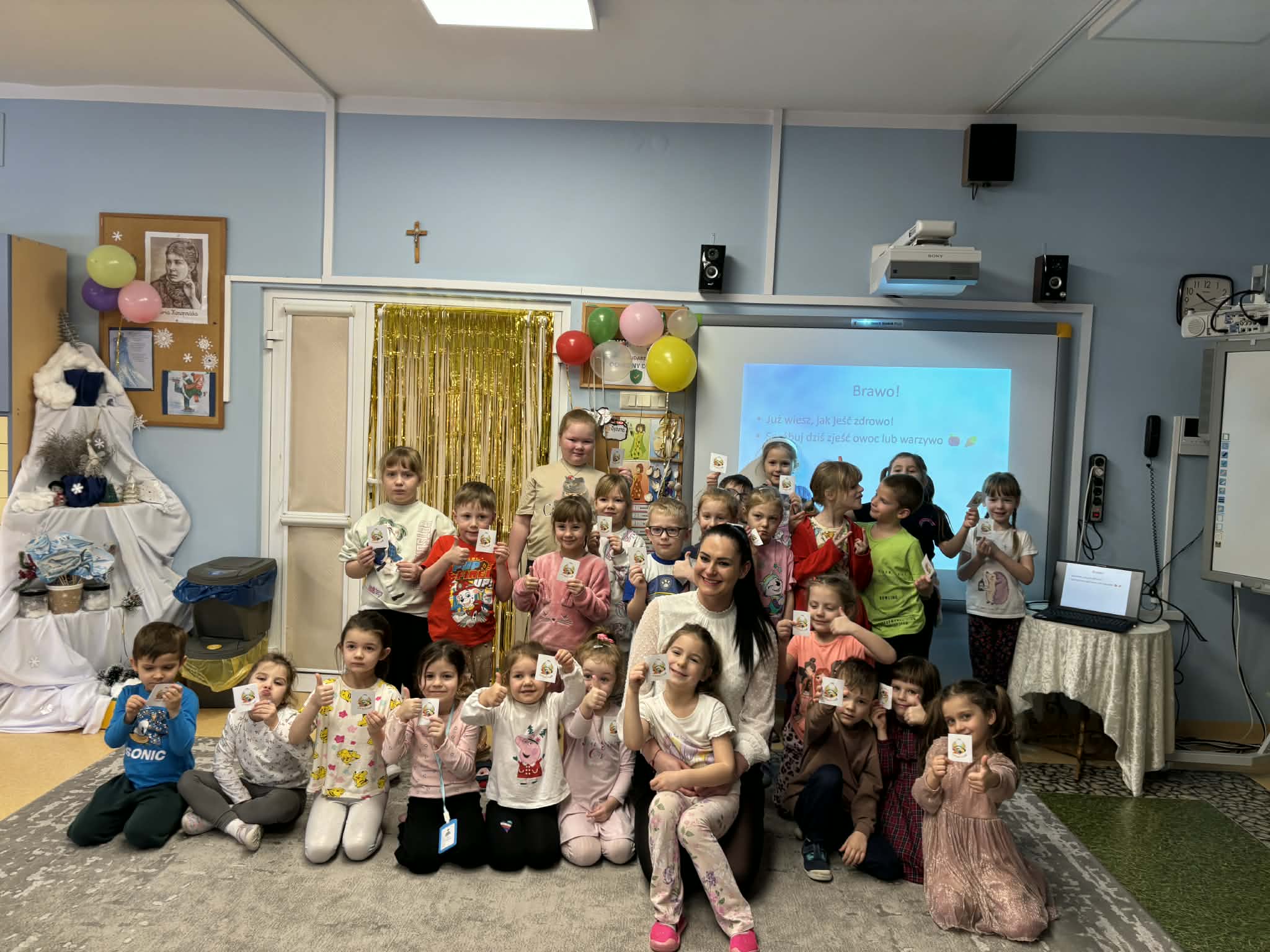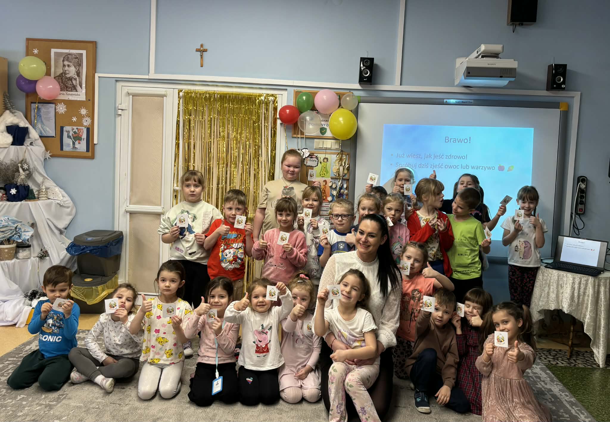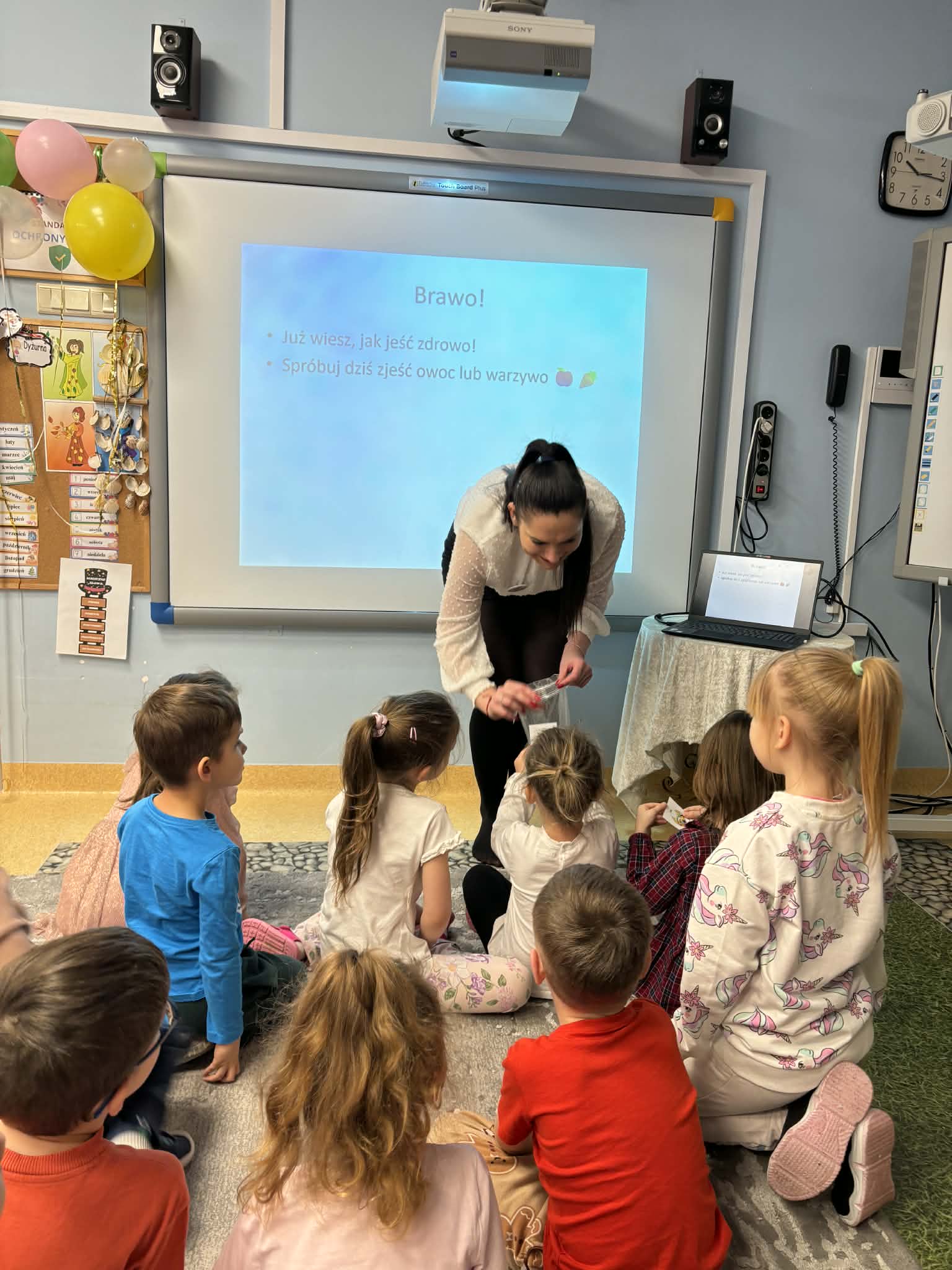 W naszym przedszkolu podejmujemy wiele inicjatyw, mających na celu promowanie zdrowego stylu życia. 18 lutego odbyło się w przedszkolu spotkanie z trenerem odżywiania Panią Joanną Pogorzelską na temat W jaki sposób żywność i aktywność fizyczna wpływa na nasze zdrowie i codzienne funkcjonowanie. Serdecznie dziękujemy Pani Joannie za interesujące spotkanie i upominki dla dzieci.