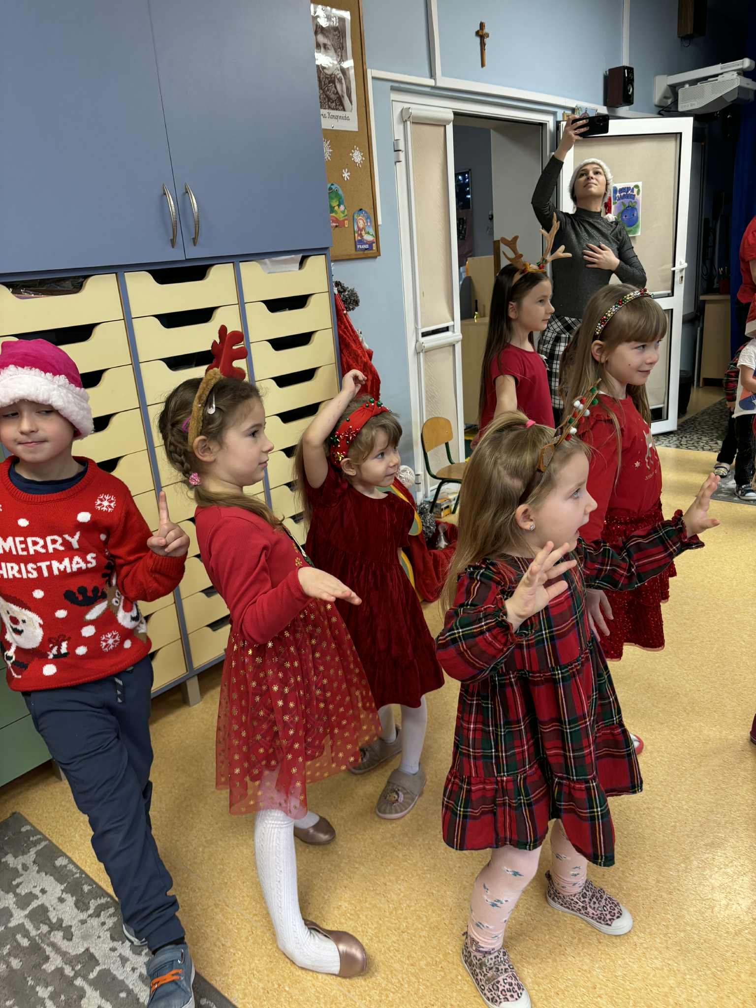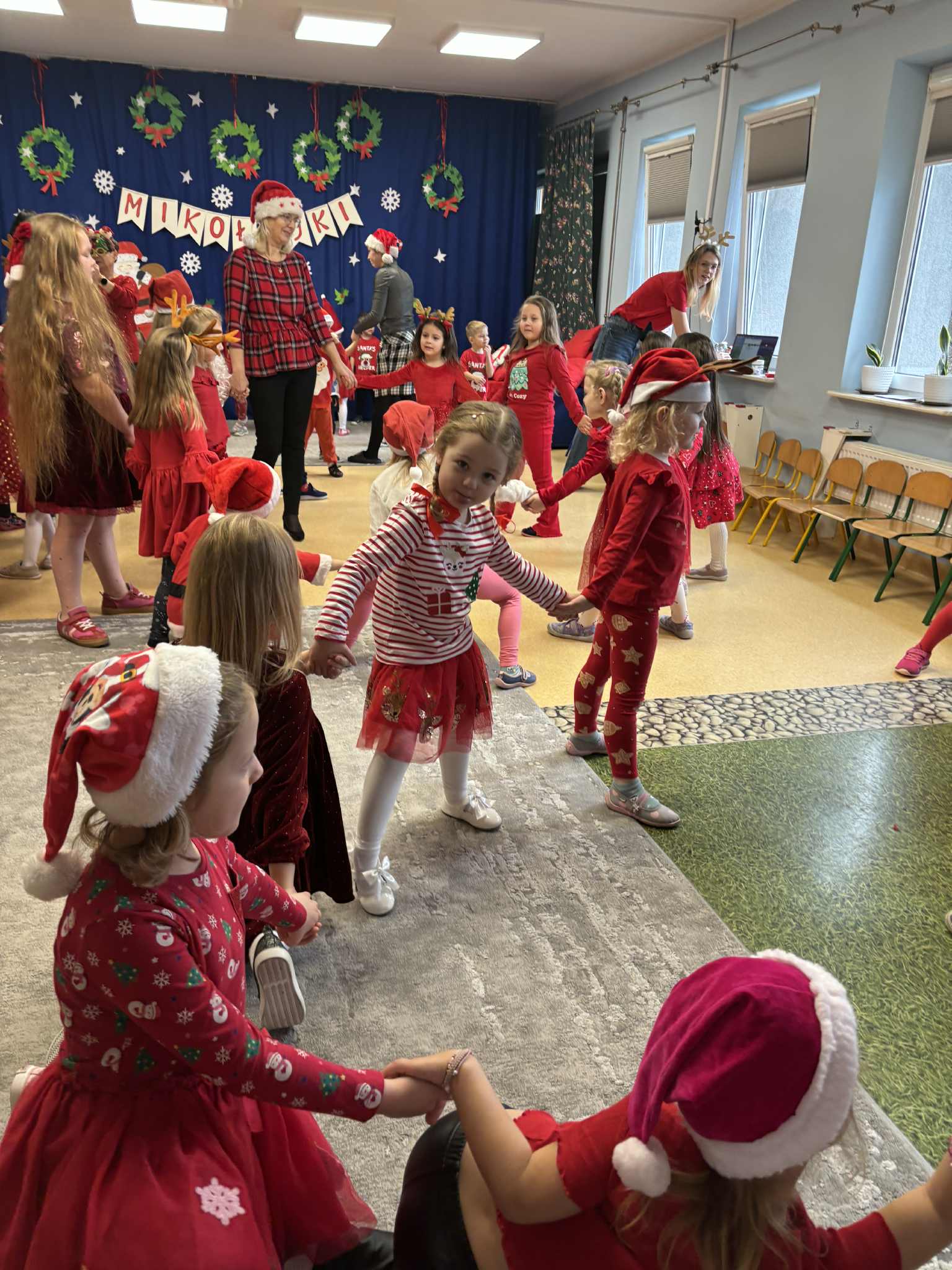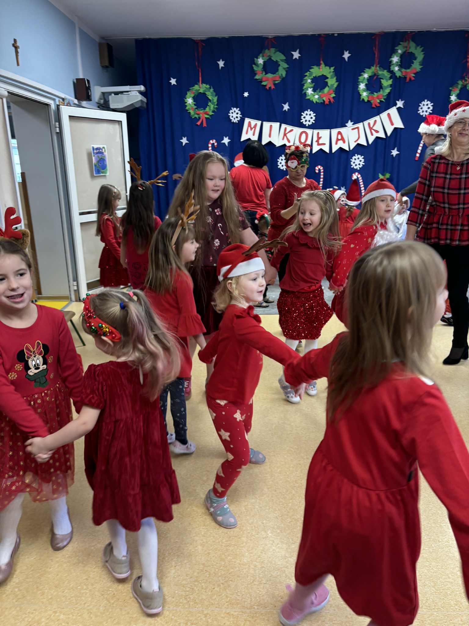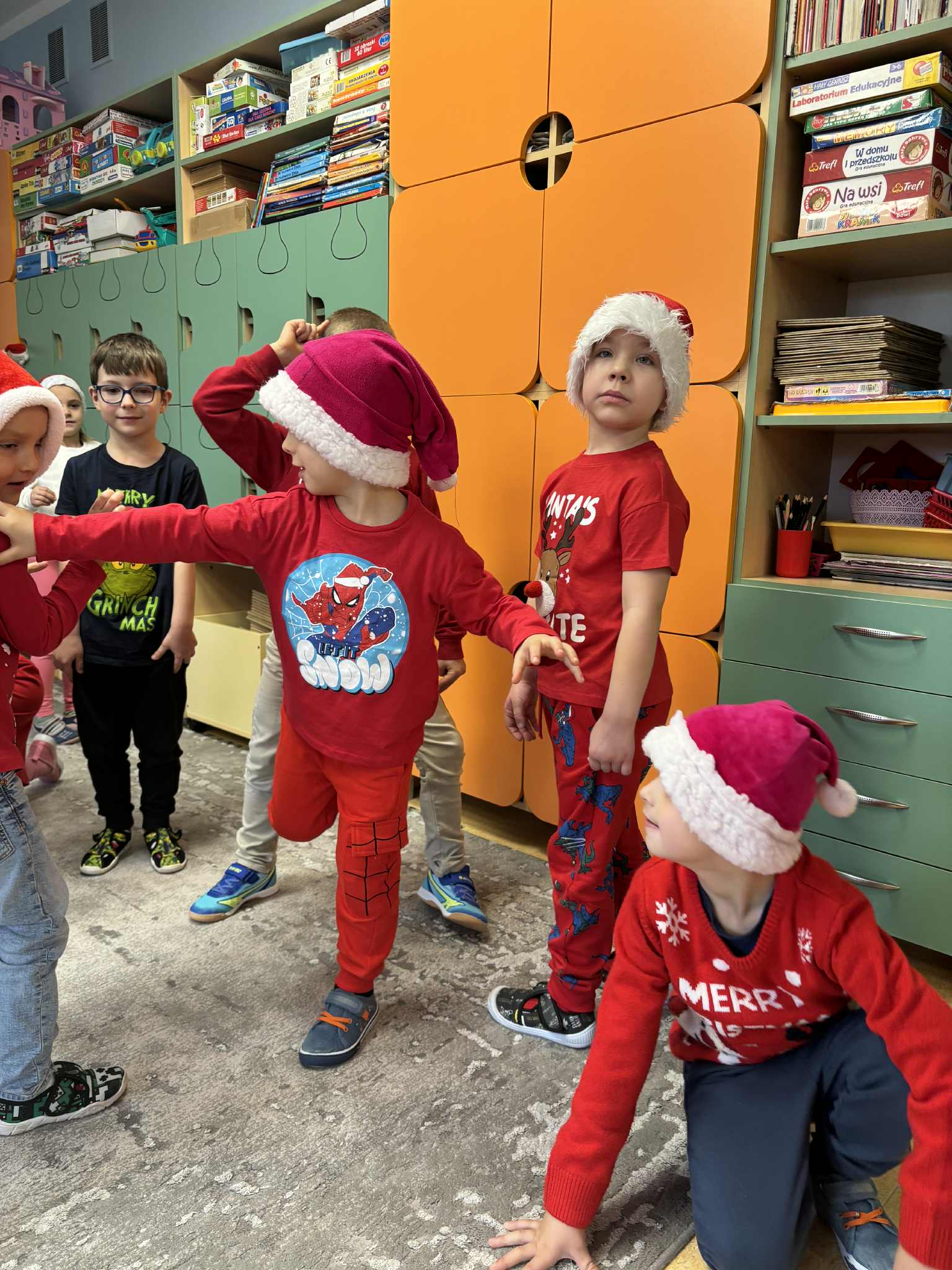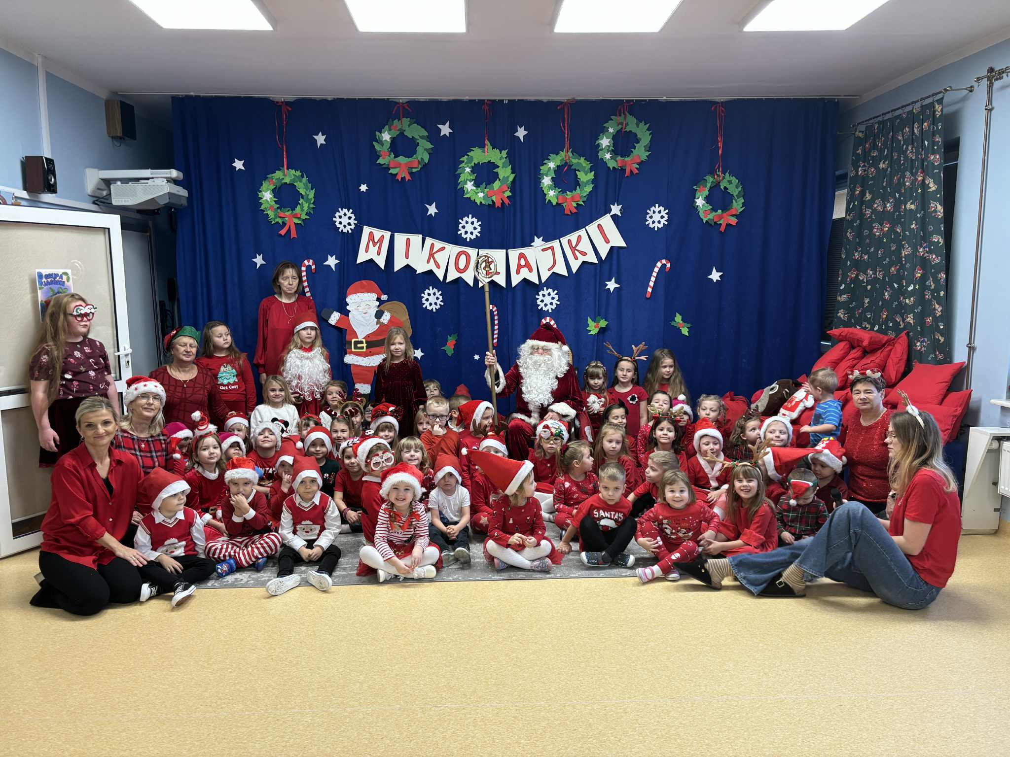 Jak tradycja nakazuje 6 grudnia każde dziecko czeka na odwiedziny Świętego Mikołaja . Do naszego przedszkola również tego dnia zawitał Mikołaj z workiem prezentów. Przedszkolaki wesołymi piosenkami serce jego rozgrzały, a wspólnym tańcem rozruszały. Potem nastąpiła najbardziej oczekiwana chwila,czyli rozdanie prezentów.Na pożegnanie obiecał, że w Wigilię jeszcze raz nas odwiedzi. Trzymamy go za słowo i obiecujemy, że nadal będziemy grzeczni. Serdecznie dziękujemy Świętemu Mikołajowi, że znalazł czas by OSOBIŚCIE odwiedzić nas. Buziaki przesyłamy i w święta czekamy.