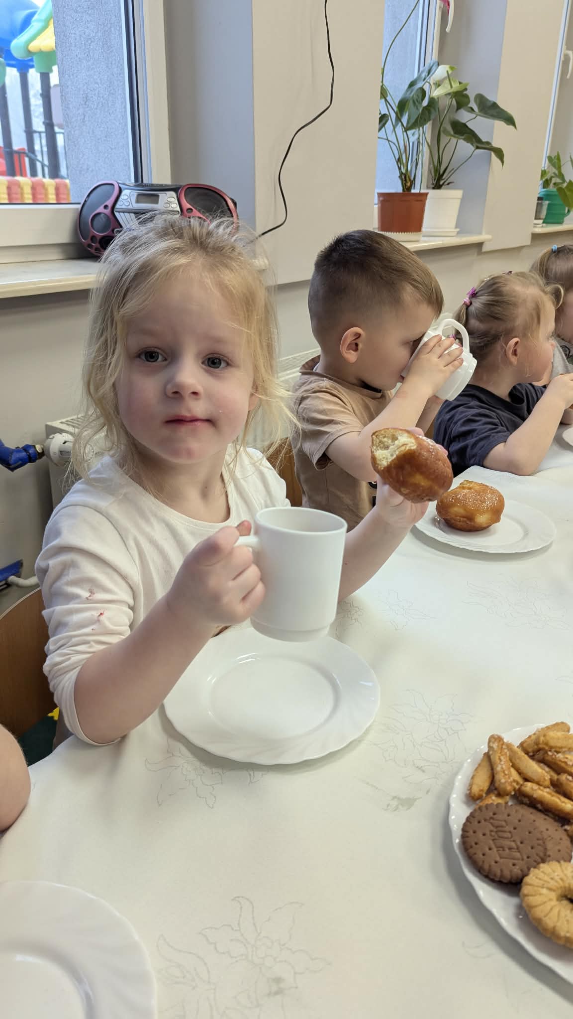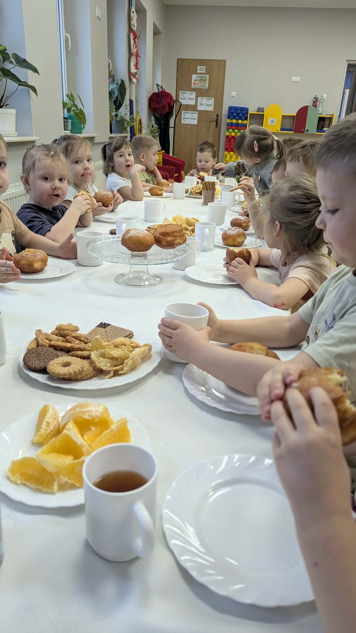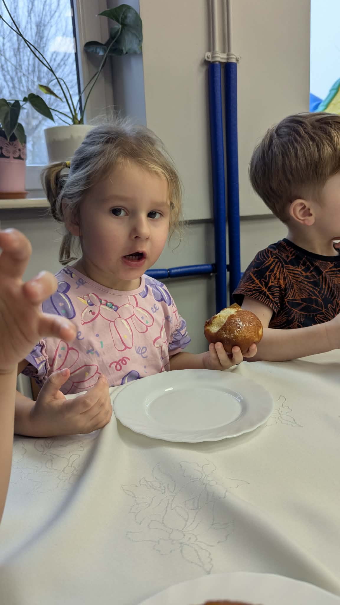 W naszej grupie świętowaliśmy Tłusty Czwartek, poznając jedną z najsłodszych polskich tradycji. Rozmawialiśmy o tym, skąd wziął się zwyczaj jedzenia pączków i innych słodkości oraz dlaczego ten dzień jest tak wyczekiwany w całej Polsce. Podczas zajęć nie zabrakło zabaw tematycznych, rozmów o ulubionych smakach nadzienia oraz prac plastycznych inspirowanych pączkami. Wspólne świętowanie przyniosło wiele radości i uśmiechu, a przy okazji było doskonałą okazją do poznawania polskich tradycji w miłej, słodkiej atmosferze.