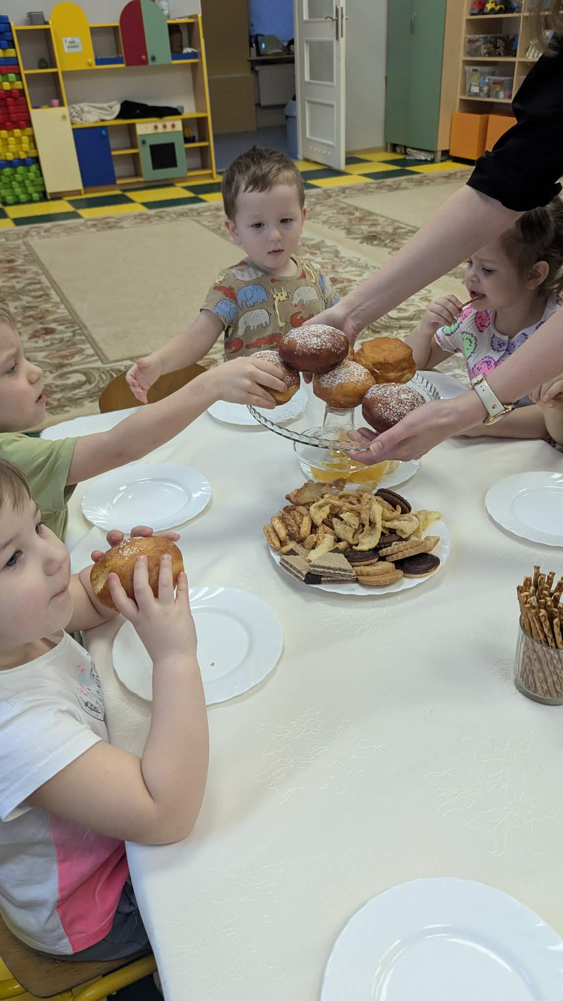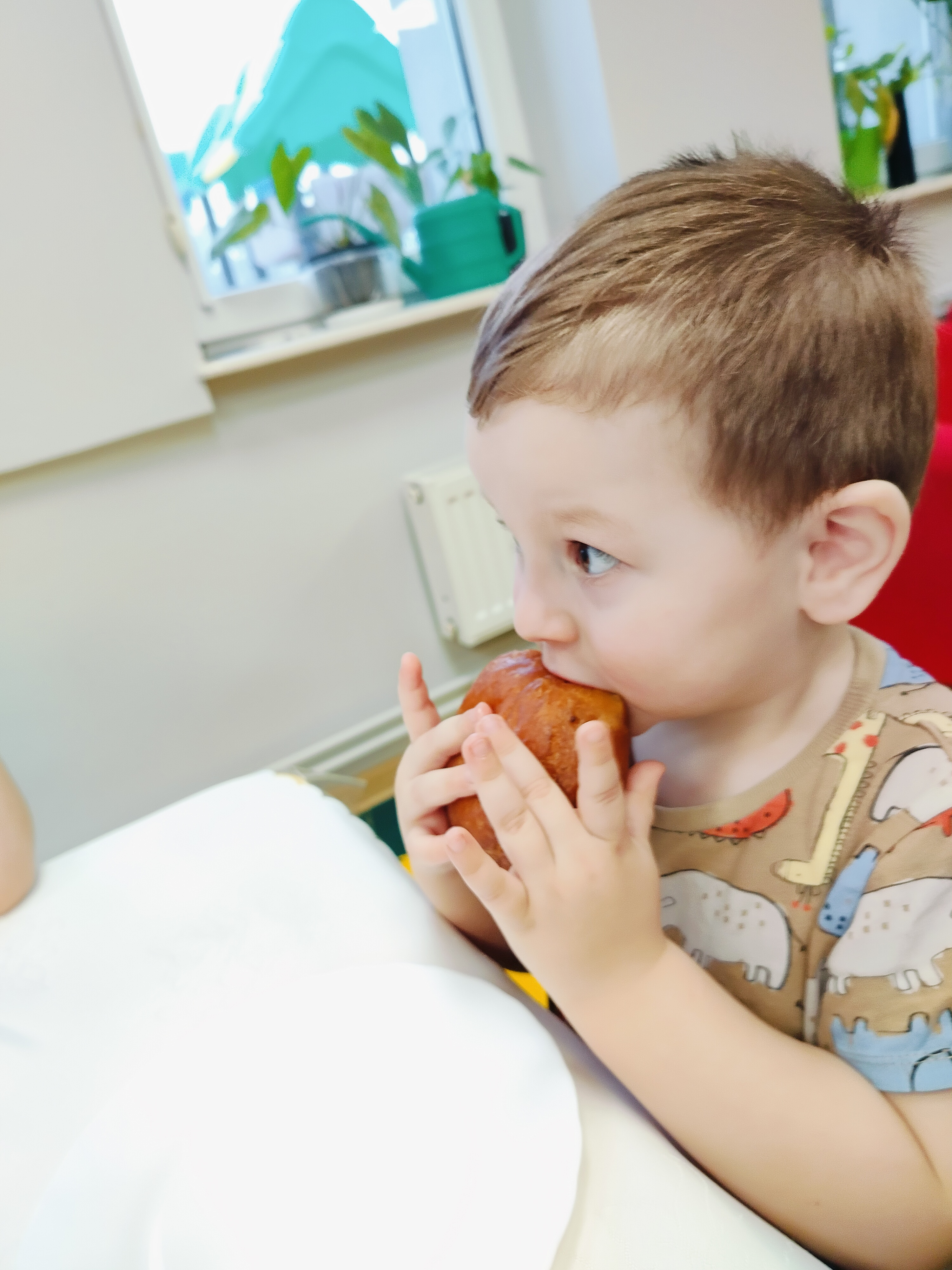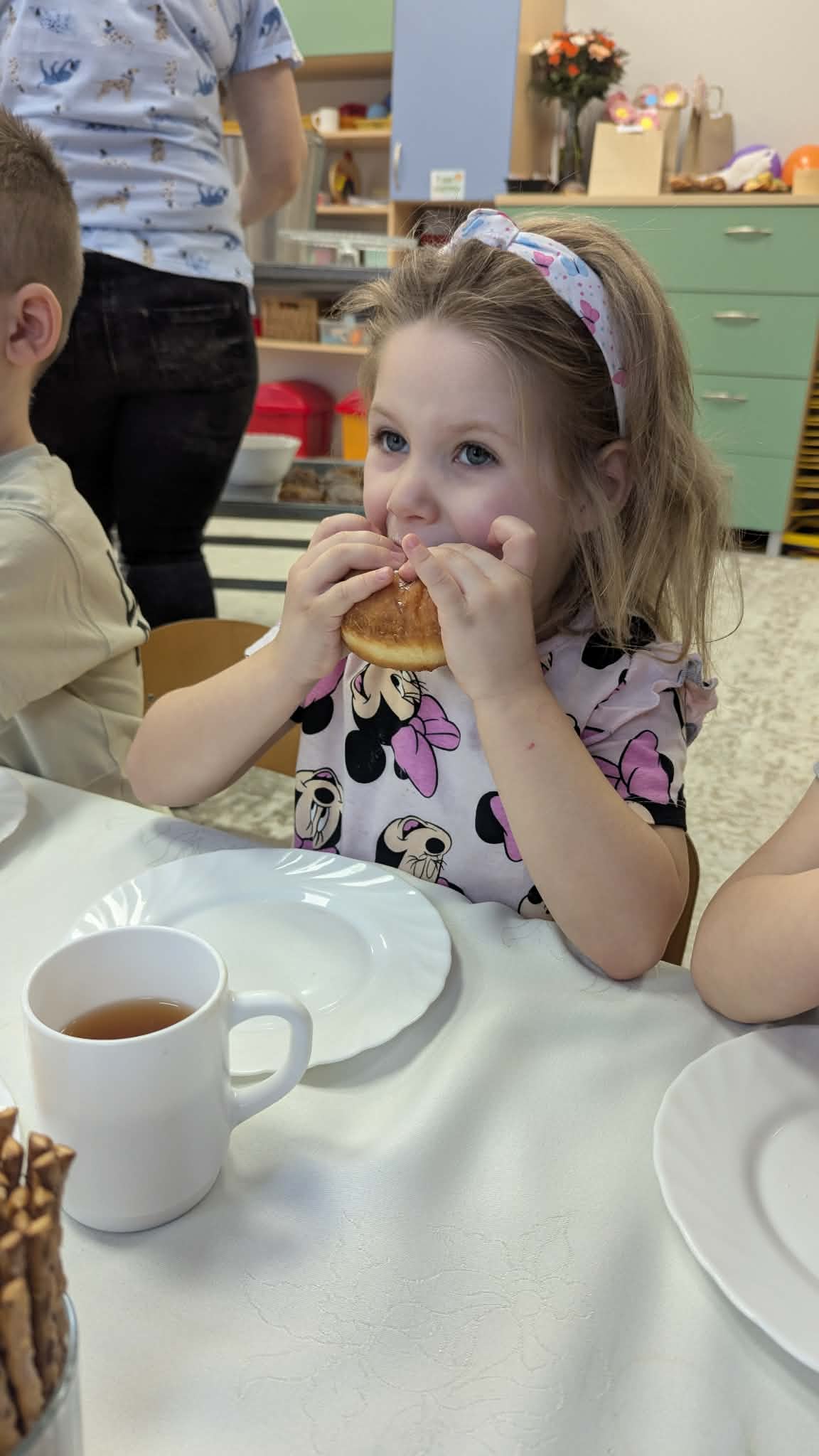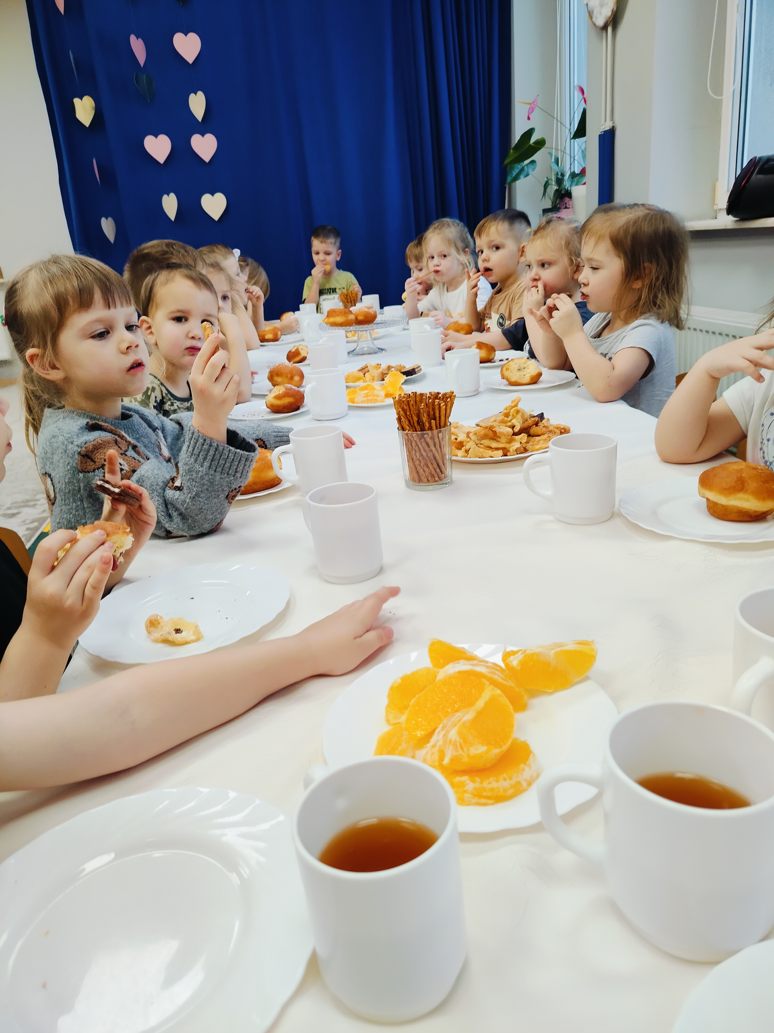 W naszej grupie świętowaliśmy Tłusty Czwartek, poznając jedną z najsłodszych polskich tradycji. Rozmawialiśmy o tym, skąd wziął się zwyczaj jedzenia pączków i innych słodkości oraz dlaczego ten dzień jest tak wyczekiwany w całej Polsce. Podczas zajęć nie zabrakło zabaw tematycznych, rozmów o ulubionych smakach nadzienia oraz prac plastycznych inspirowanych pączkami. Wspólne świętowanie przyniosło wiele radości i uśmiechu, a przy okazji było doskonałą okazją do poznawania polskich tradycji w miłej, słodkiej atmosferze.