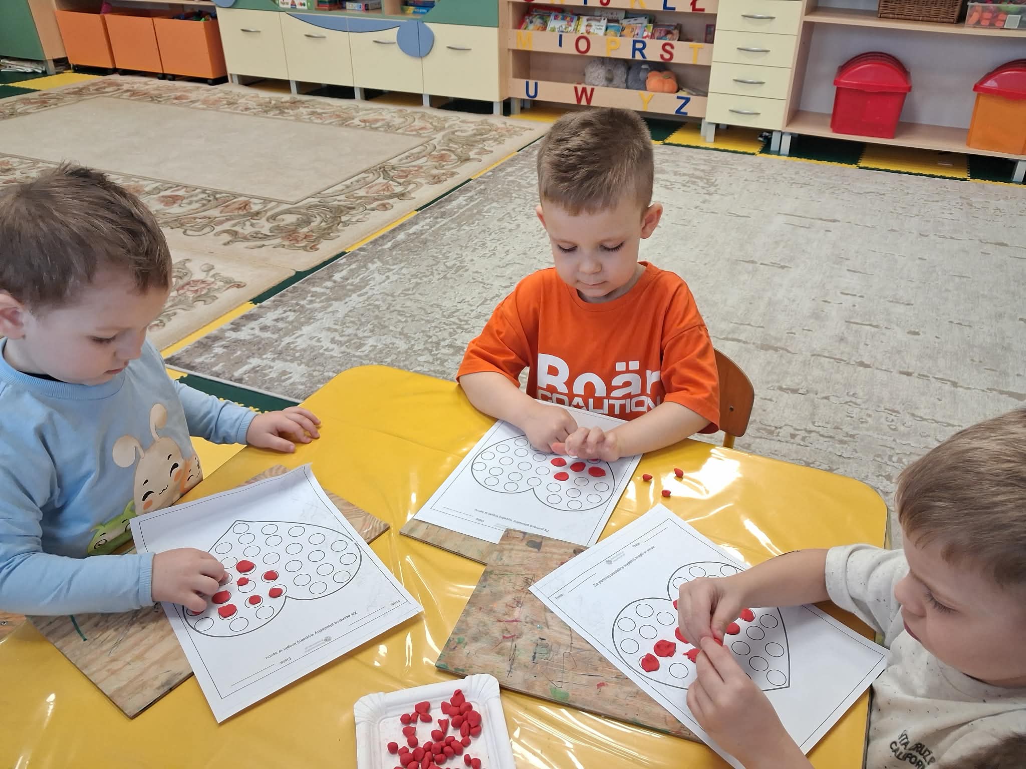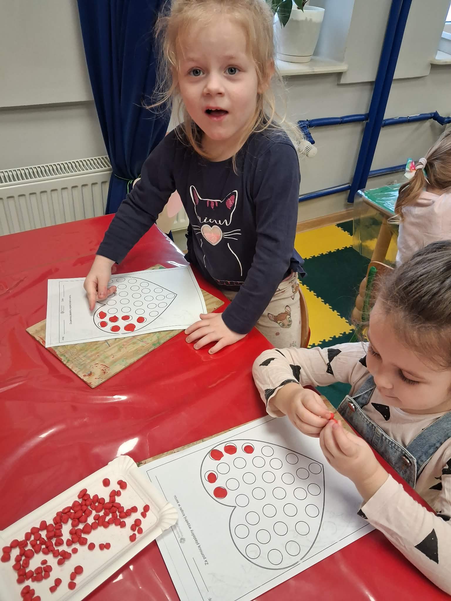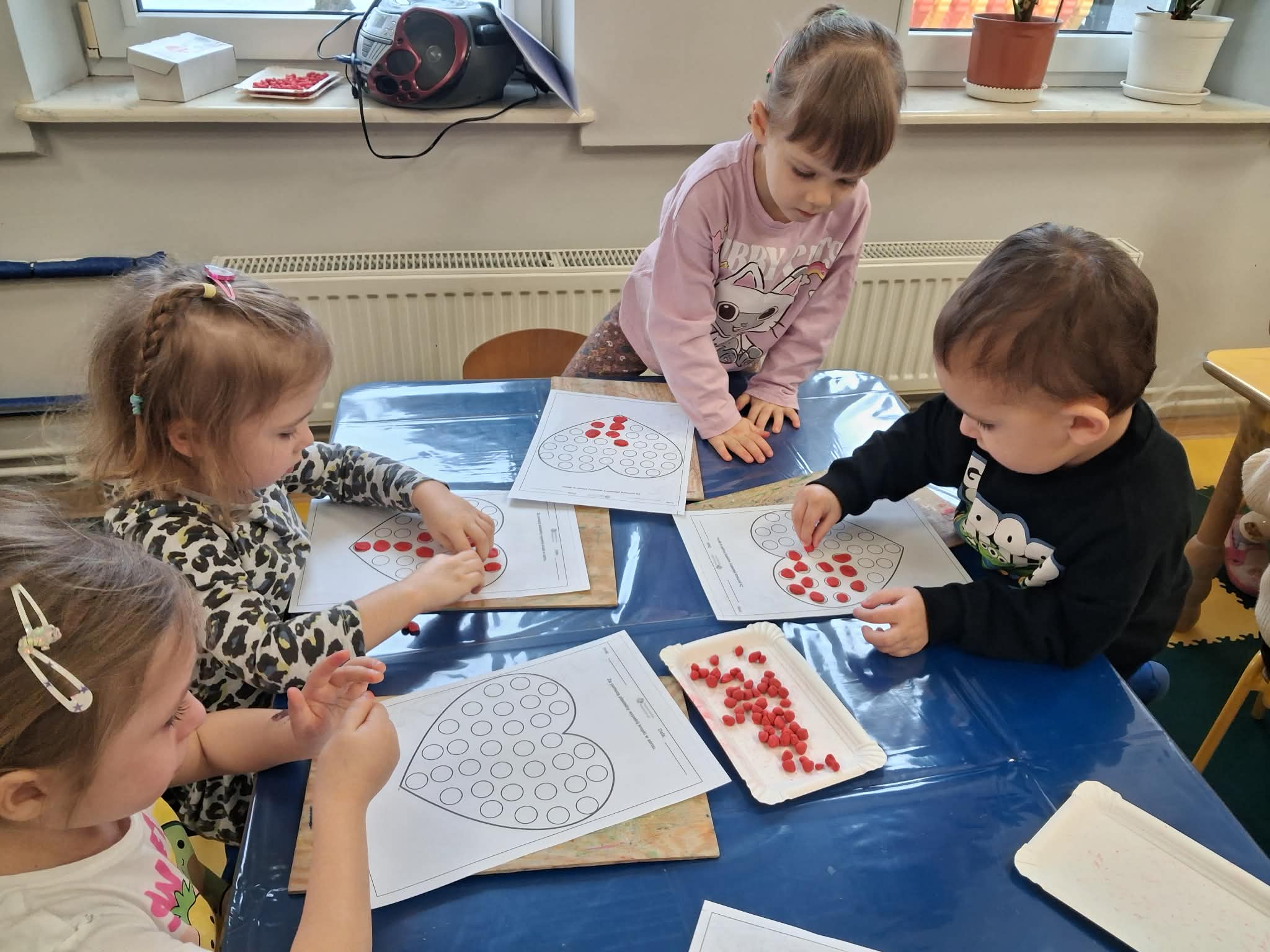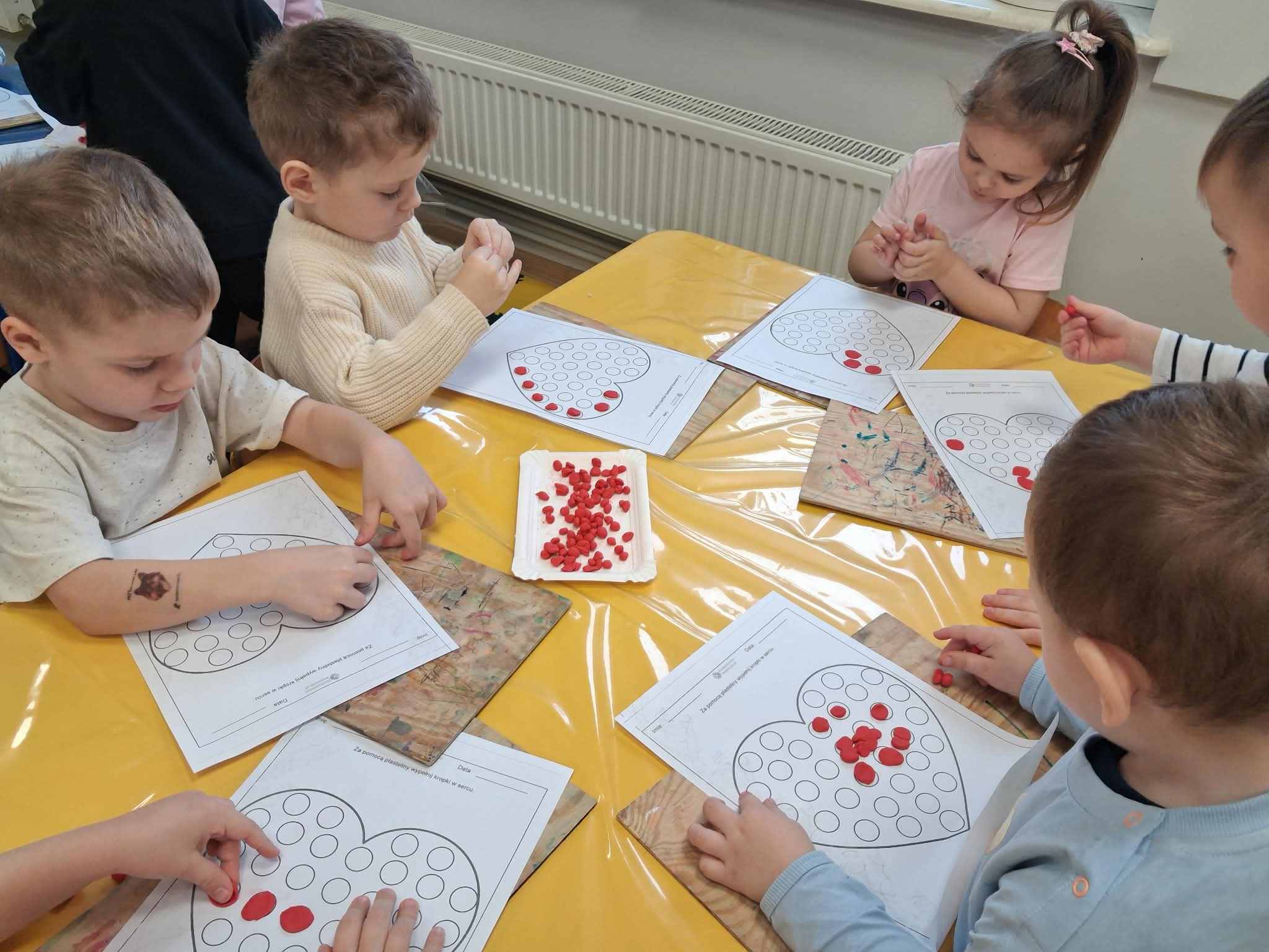 Walentynki w przedszkolu to wyjątkowy czas pełen radości i okazja do rozmów o tym, jak ważna jest przyjaźń oraz okazywanie sobie życzliwości. Tego dnia kolor czerwony i serduszka były obecne wszędzie, tworząc ciepłą i serdeczną atmosferę. Podczas balu walentynkowego nie zabrakło wspaniałej zabawy – dzieci tańczyły w parach, bawiły się z serduszkami, dopasowywały połówki serc oraz wykonywały różnorodne zadania ruchowe. Było dużo śmiechu, współpracy i wspólnej radości. W wolnej chwili wykonaliśmy także zadanie doskonalące motorykę małą, rozwijając sprawność dłoni i palców. To był dzień pełen uśmiechu, serdeczności i wspólnej zabawy.