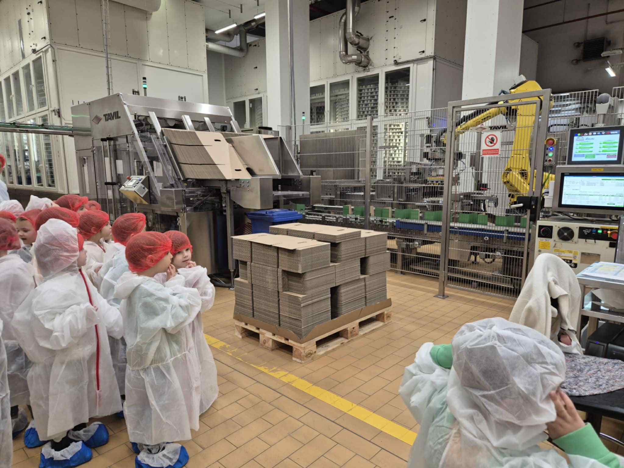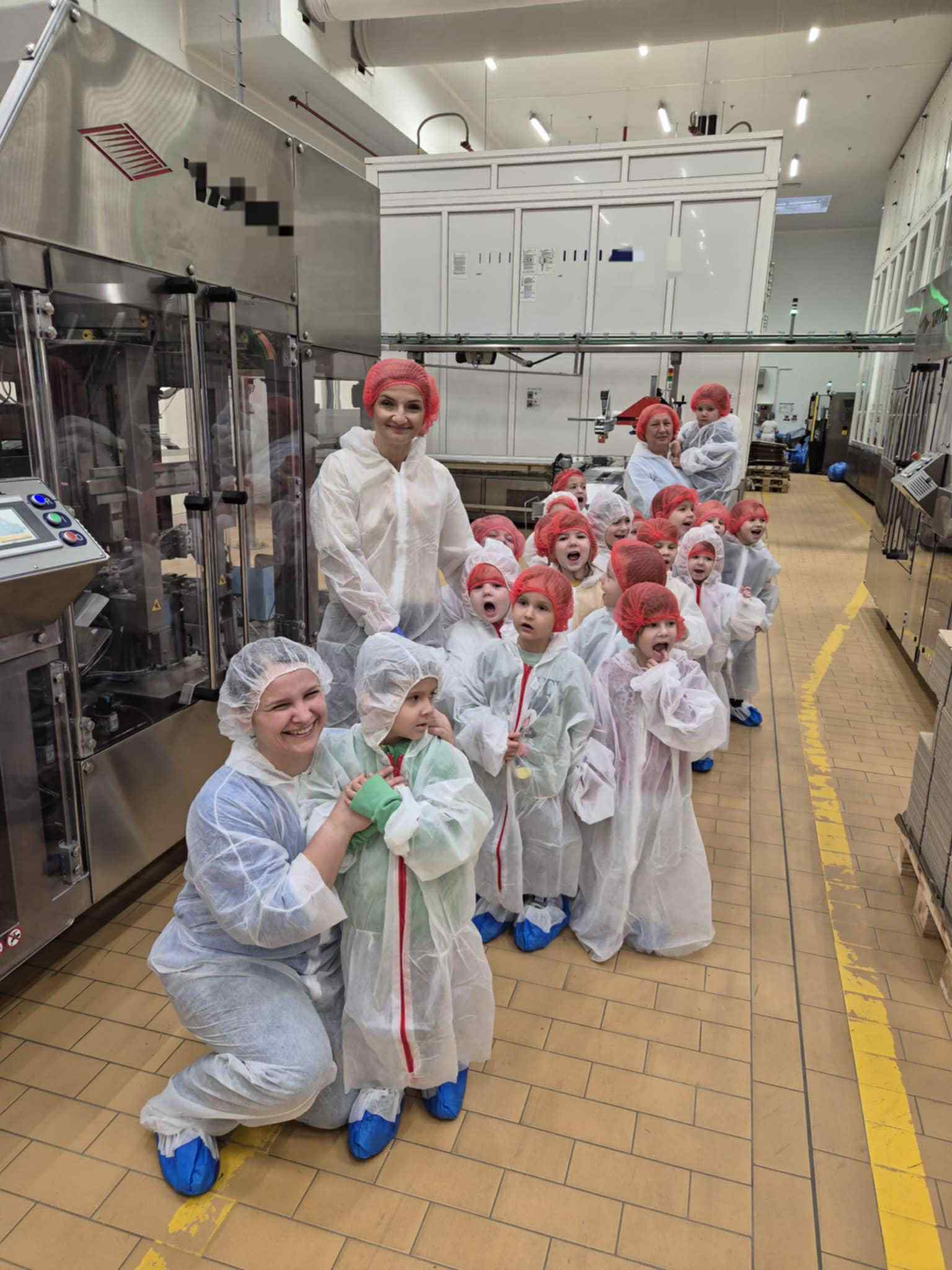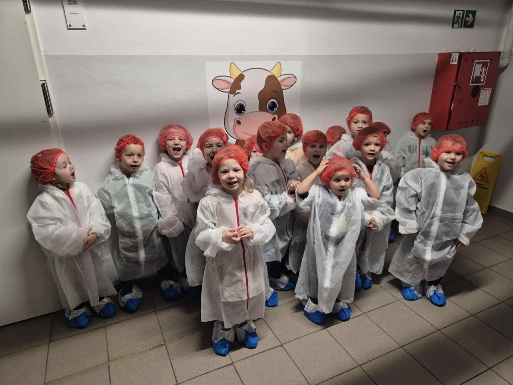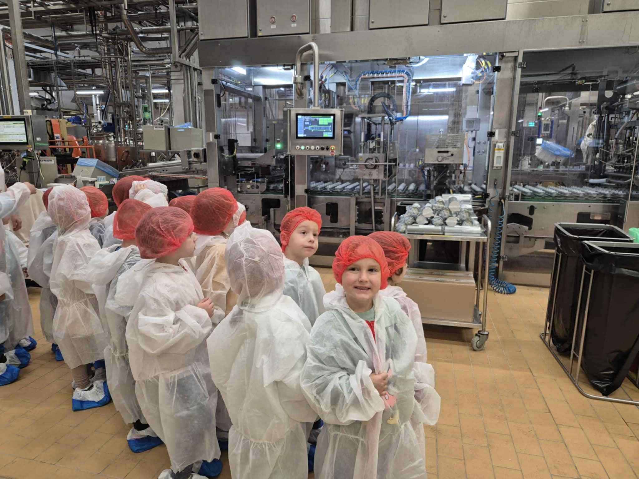 23 października przedszkolaki z grupy Pszczółki wyruszyły na wycieczkę do zakładu mleczarskiego „Hochland” w Węgrowie. Na miejscu zostali ciepło przywitani przez dyrektora zakładu panią Michalinę Merta oraz panią Bożenę Pabian pracownika zakładu i jednocześnie mamę Krzysia z naszej grupy. Pszczółki wzięły udział w zajęciach na temat wartości odżywczych mleka i jego przetworów, poznały specyfikę pracy laboratorium, halę produkcyjną, pracę ludzi zatrudnionych w zakładzie oraz nowoczesnych maszyn, obejrzały - proces produkcji serów. Oczywiście nie zabrakło degustacji produktów nabiałowych. Ogromnym powodzeniem cieszył się ser gouda. Dzieci dostały na pamiątkę magnesy, kolorowanki oraz ser żółty, który z apetytem zjadły następnego dnia podczas śniadania. Serdecznie dziękujemy pani Bożence za zaproszenie i możliwość zwiedzania zakładu.