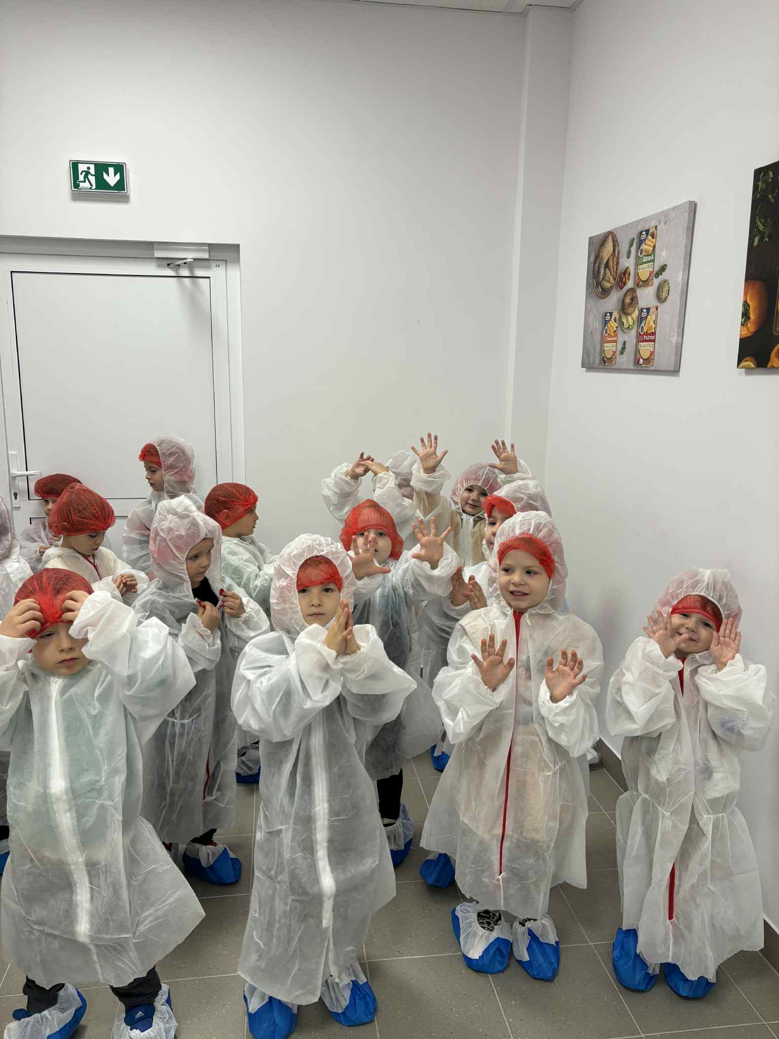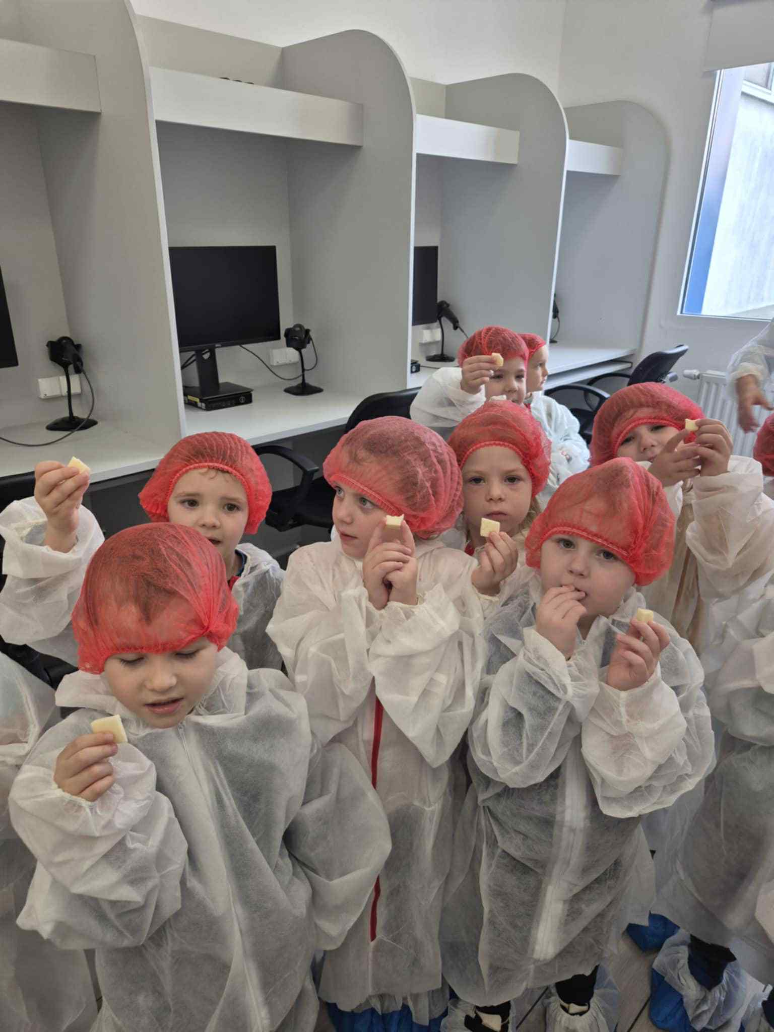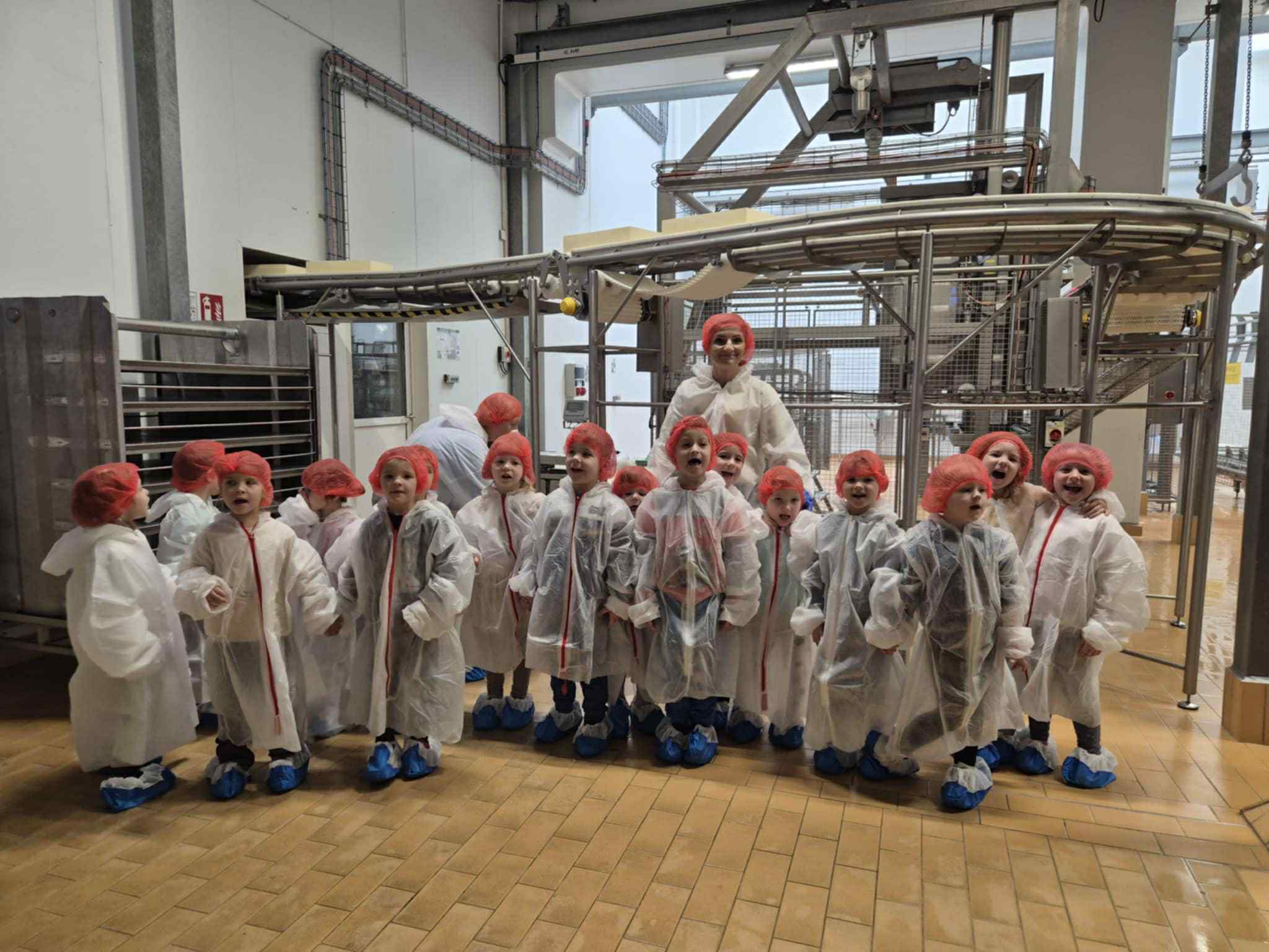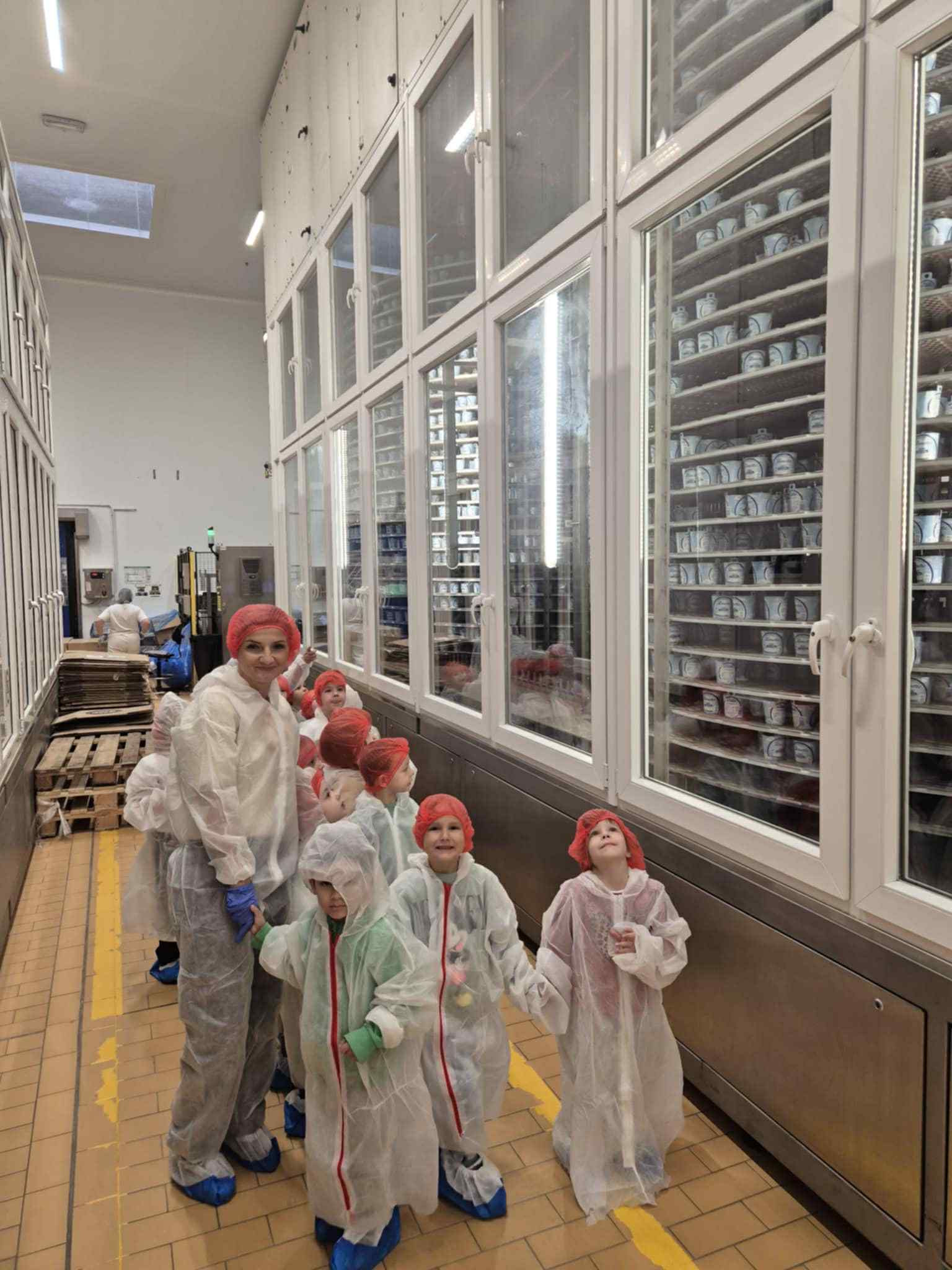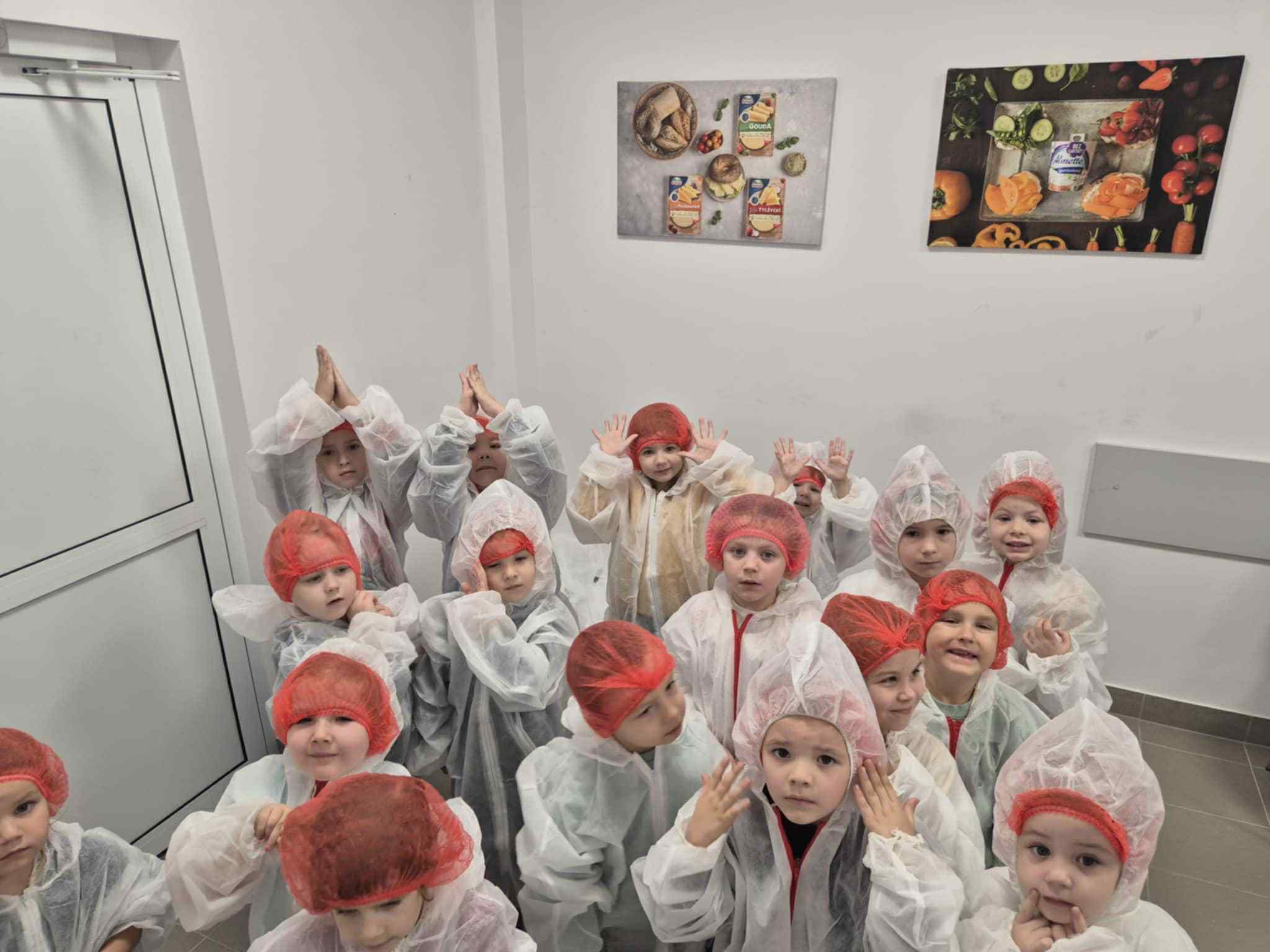 23 października przedszkolaki z grupy Pszczółki wyruszyły na wycieczkę do zakładu mleczarskiego „Hochland” w Węgrowie. Na miejscu zostali ciepło przywitani przez dyrektora zakładu panią Michalinę Merta oraz panią Bożenę Pabian pracownika zakładu i jednocześnie mamę Krzysia z naszej grupy. Pszczółki wzięły udział w zajęciach na temat wartości odżywczych mleka i jego przetworów, poznały specyfikę pracy laboratorium, halę produkcyjną, pracę ludzi zatrudnionych w zakładzie oraz nowoczesnych maszyn, obejrzały - proces produkcji serów. Oczywiście nie zabrakło degustacji produktów nabiałowych. Ogromnym powodzeniem cieszył się ser gouda. Dzieci dostały na pamiątkę magnesy, kolorowanki oraz ser żółty, który z apetytem zjadły następnego dnia podczas śniadania. Serdecznie dziękujemy pani Bożence za zaproszenie i możliwość zwiedzania zakładu.