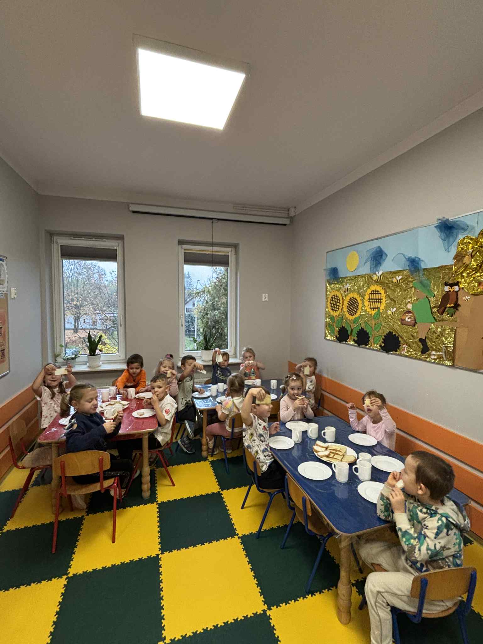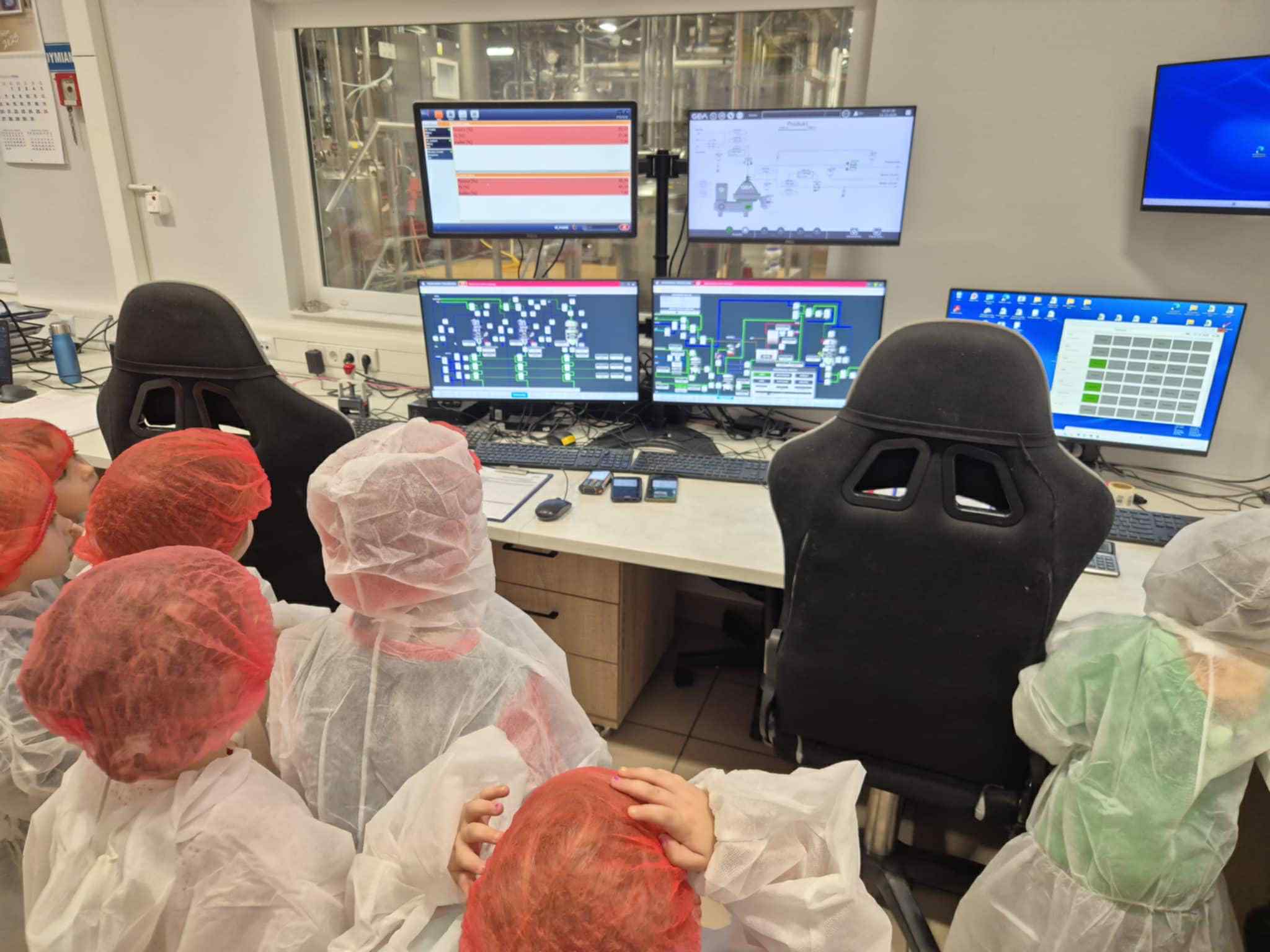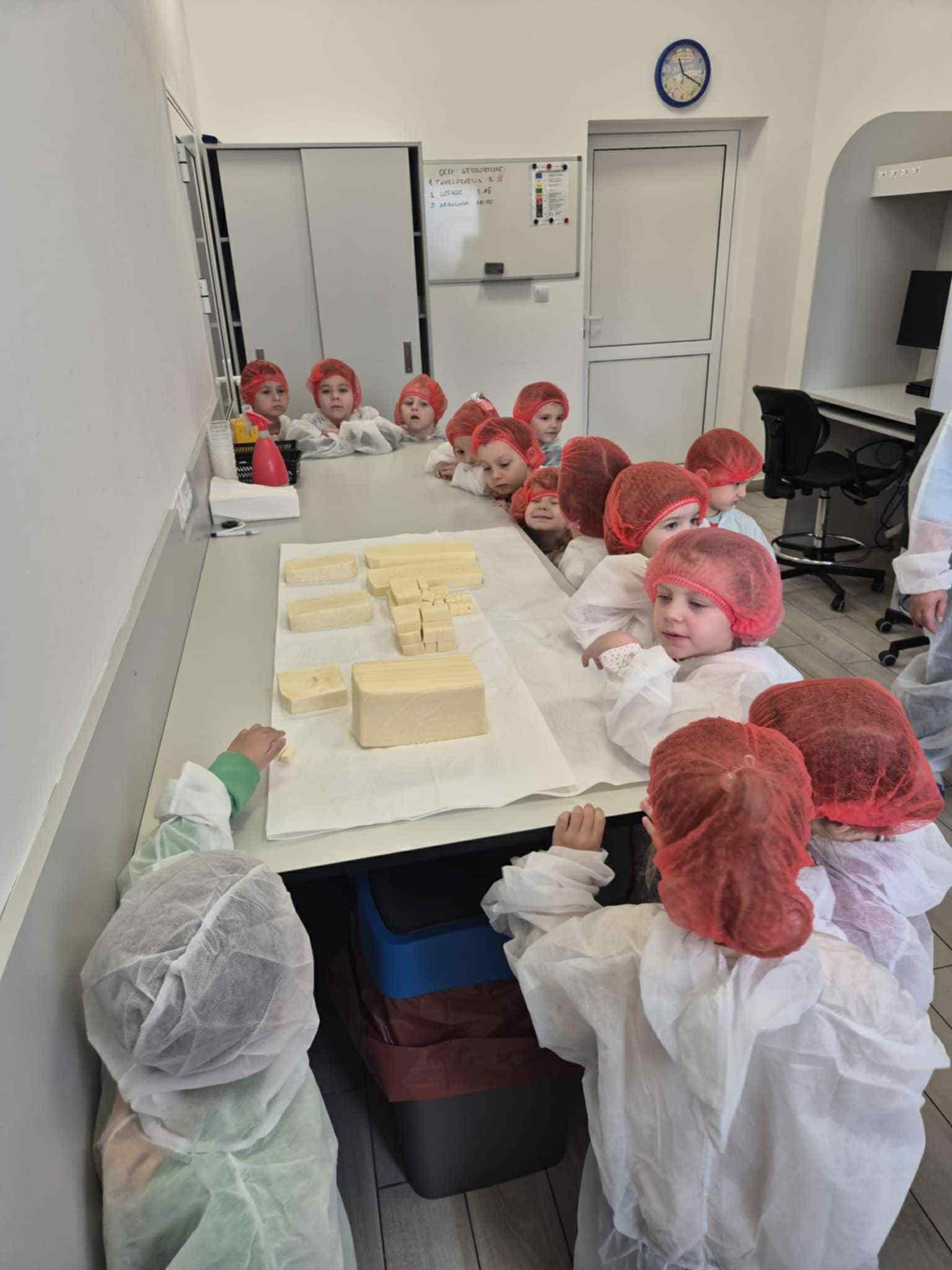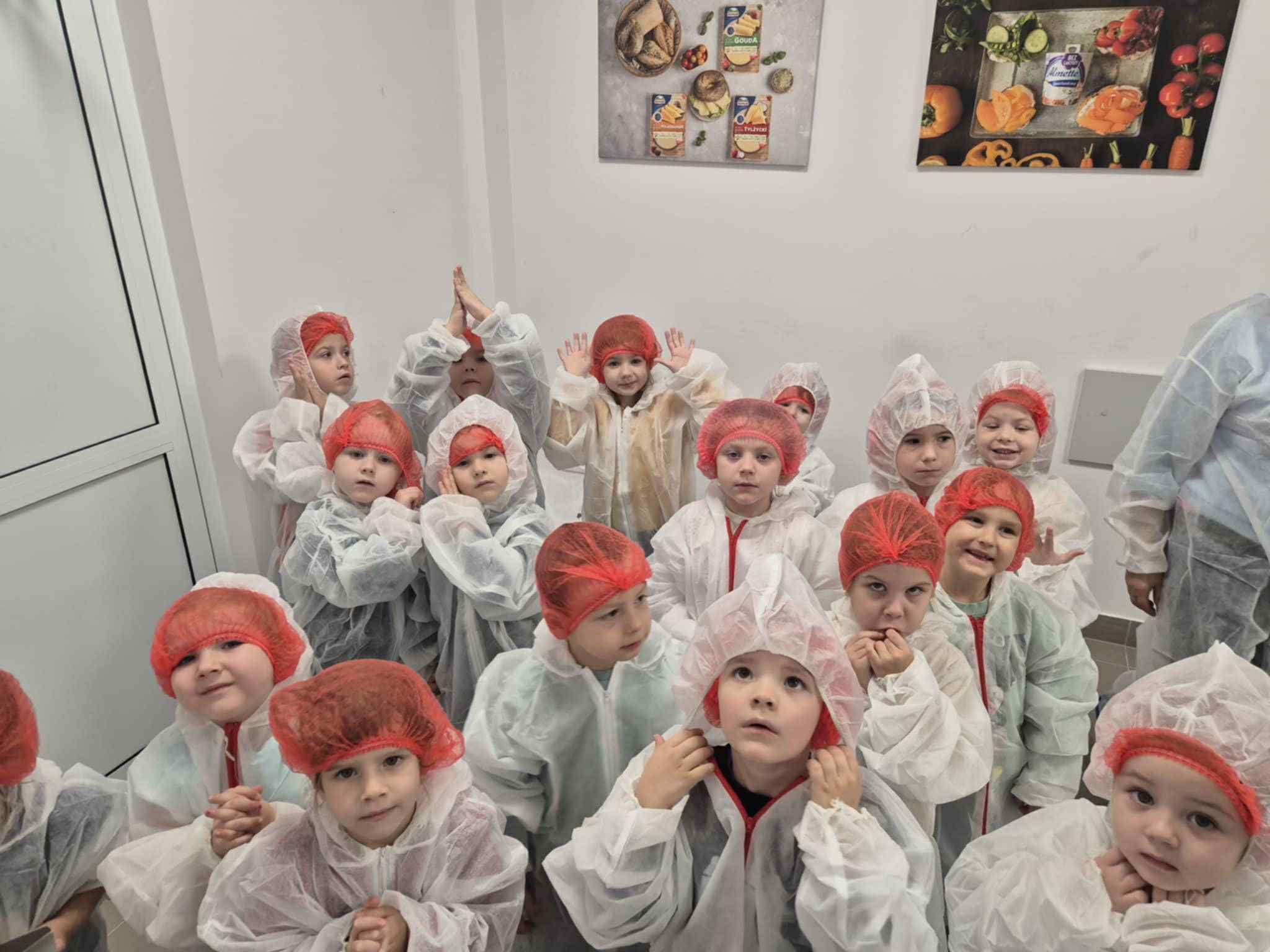 23 października przedszkolaki z grupy Pszczółki wyruszyły na wycieczkę do zakładu mleczarskiego „Hochland” w Węgrowie. Na miejscu zostali ciepło przywitani przez dyrektora zakładu panią Michalinę Merta oraz panią Bożenę Pabian pracownika zakładu i jednocześnie mamę Krzysia z naszej grupy. Pszczółki wzięły udział w zajęciach na temat wartości odżywczych mleka i jego przetworów, poznały specyfikę pracy laboratorium, halę produkcyjną, pracę ludzi zatrudnionych w zakładzie oraz nowoczesnych maszyn, obejrzały - proces produkcji serów. Oczywiście nie zabrakło degustacji produktów nabiałowych. Ogromnym powodzeniem cieszył się ser gouda. Dzieci dostały na pamiątkę magnesy, kolorowanki oraz ser żółty, który z apetytem zjadły następnego dnia podczas śniadania. Serdecznie dziękujemy pani Bożence za zaproszenie i możliwość zwiedzania zakładu.