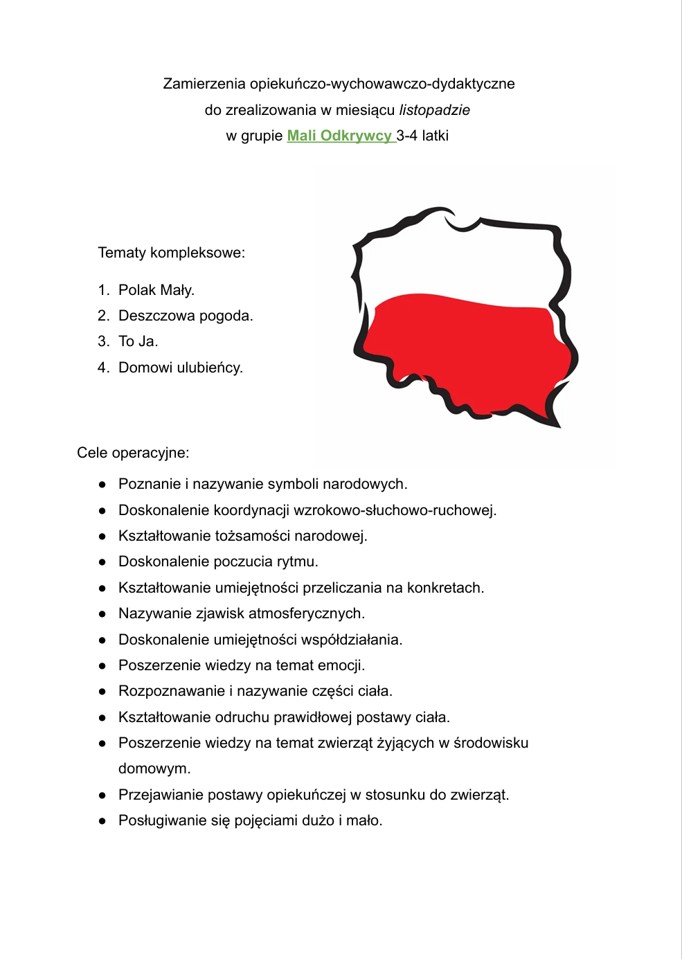 ZAMIERZENIA DYDAKTYCZNO-WYCHOWAWCZE NA MIESIĄC LISTOPAD