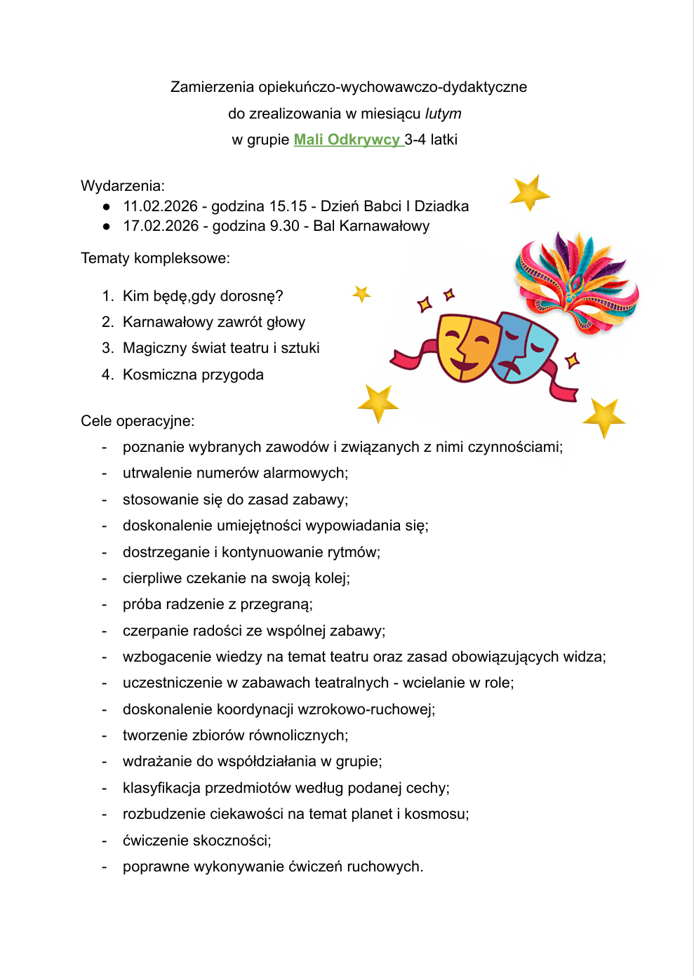 ZAMIERZENIA DYDAKTYCZNO-WYCHOWAWCZE NA MIESIĄC LUTY