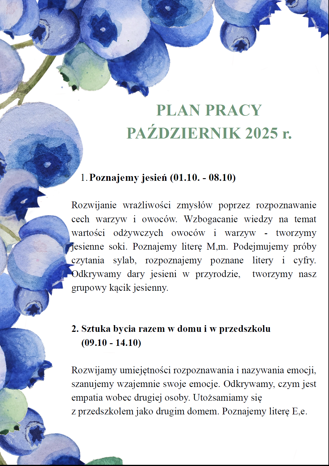 ZAMIERZENIA DYDAKTYCZNO-WYCHOWAWCZE NA MIESIĄC PAŹDZIERNIK
