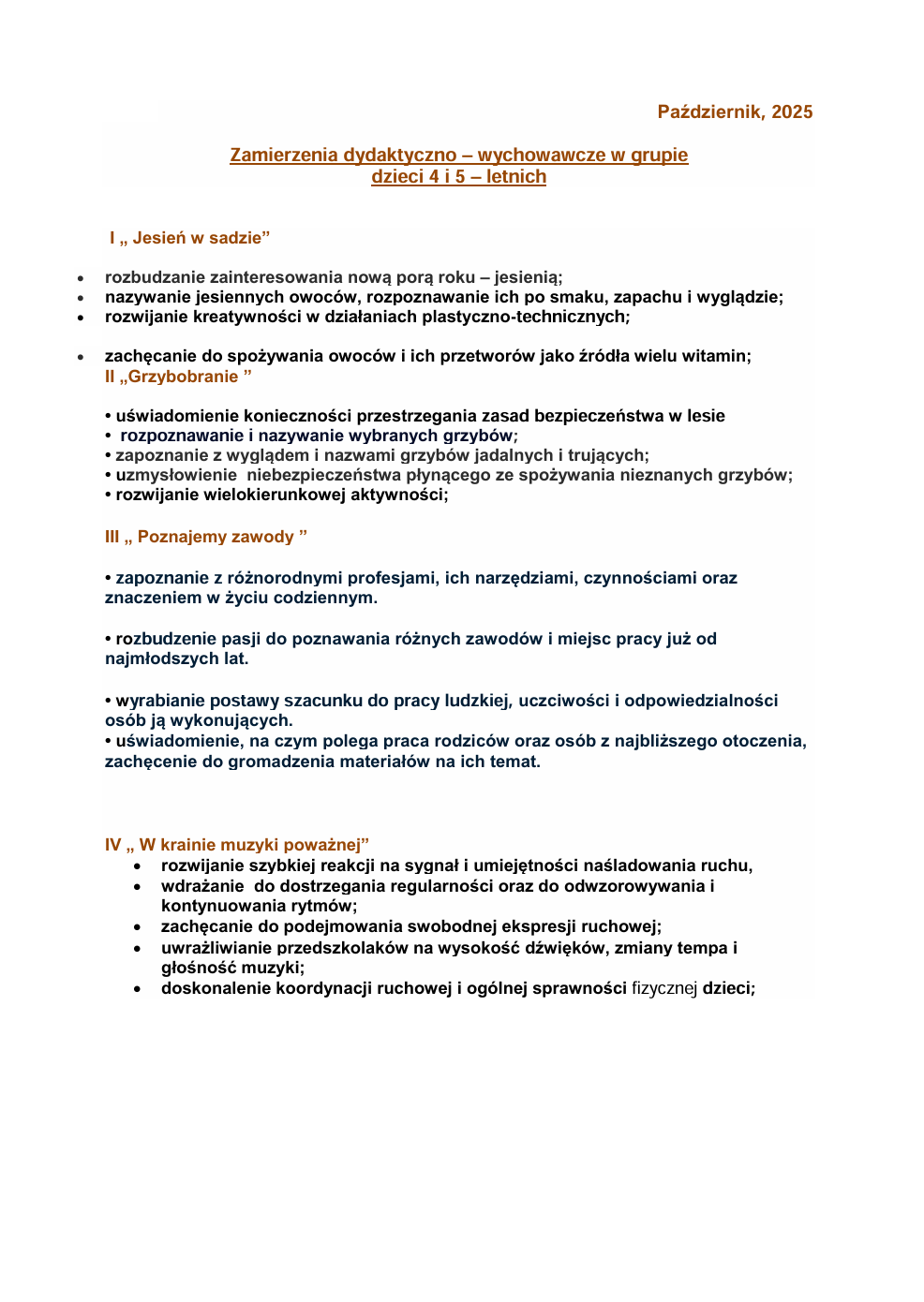 ZAMIERZENIA DYDAKTYCZNO-WYCHOWAWCZE NA MIESIĄC PAŹDZIERNIK